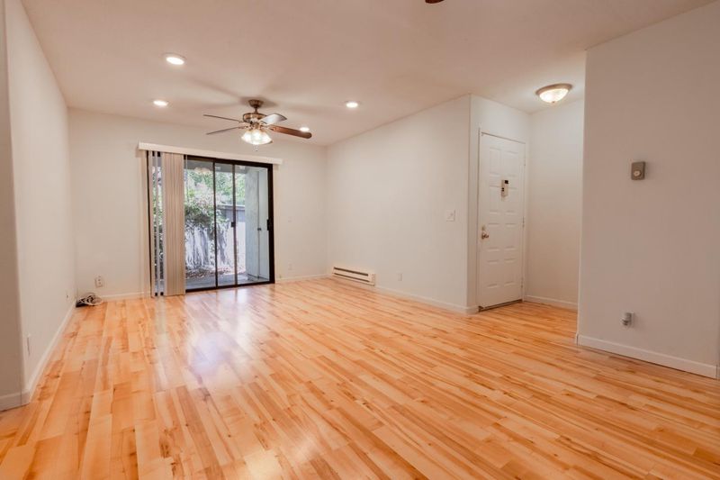 Welcome to this charming 2-bedroom, 2-bathroom home located in the vibrant city of San Jose. Spanning 832 sq ft, this residence offers a comfortable living space with essential amenities. The kitchen is equipped with an electric cooktop, formica countertops, a dishwasher, an exhaust fan, an oven range, a refrigerator, and a washer/dryer combo, making meal preparation a breeze. New baseboard heaters in the front room and bedrooms. Recessed lighting in the front room. Great view out to Greenbelt. Motivated seller, price just reduced The home features a mix of carpet, hardwood, and vinyl/linoleum flooring. Laundry facilities are conveniently available within the unit. Cooling is provided by ceiling fans, and the heating system includes a baseboard heater with individual thermostats for each room. Outside, there is small patio and storage closet for your extra belongings. This property falls within the Berryessa Union Elementary School District. Bathrooms include a shower over tub. This home offers practical and comfortable living arrangements. Alexa-controlled smart lights in LR, just bring Alexa with you. Close to schools, light rail, freeways, and shopping. Don't miss the opportunity to make this lovely San Jose home yours! TFT, their loss could be your gain!