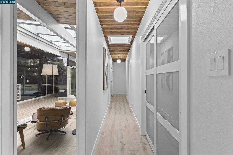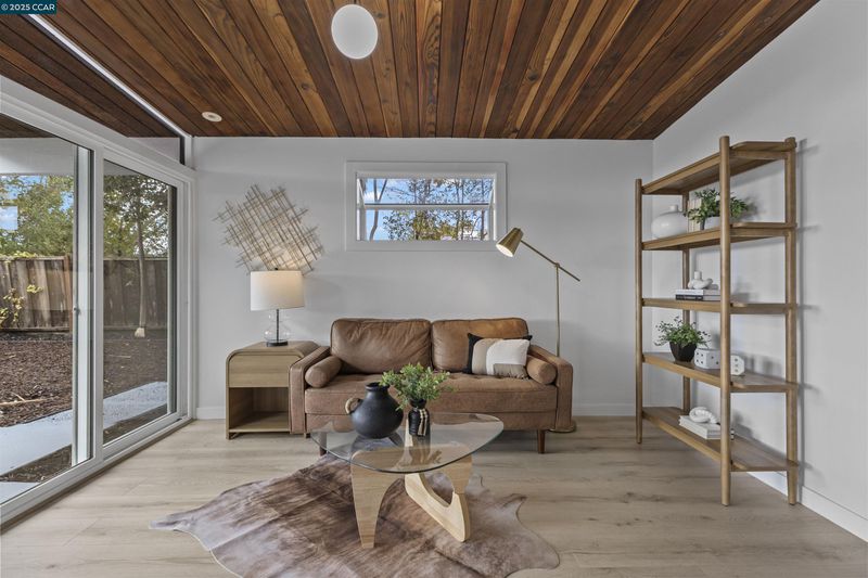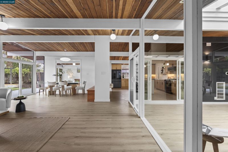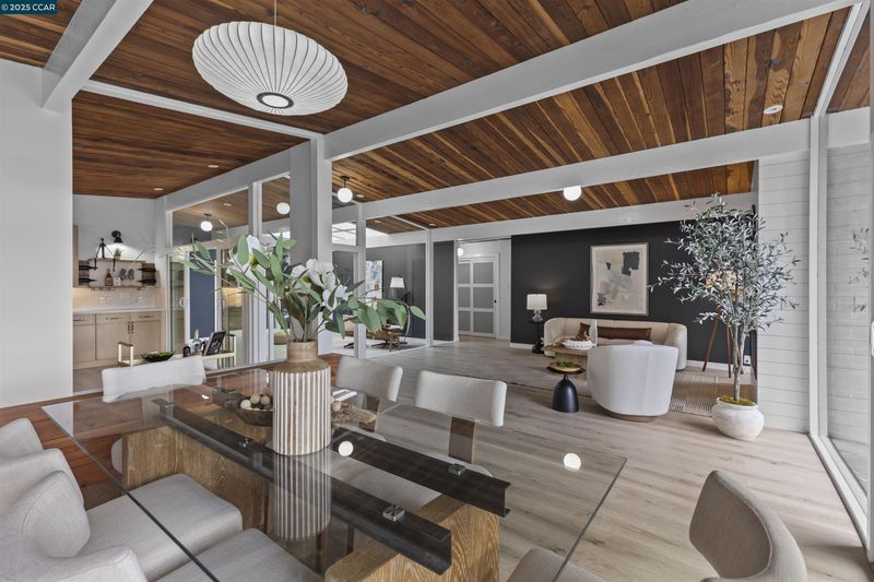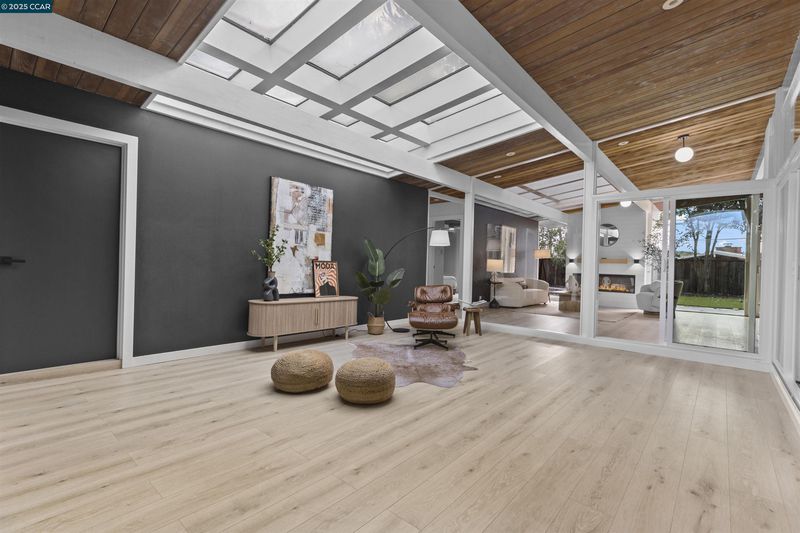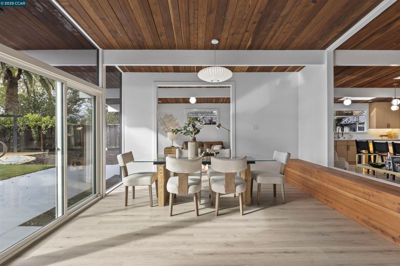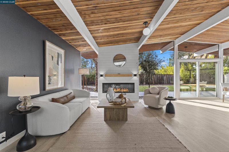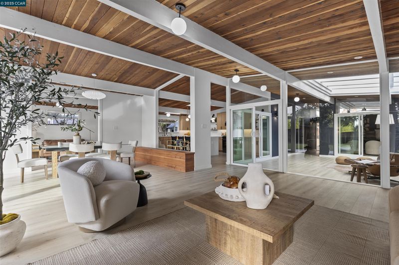 Architecturally faithful and beautifully reimagined Eichler offering iconic mid-century design with modern comfort and livability. Set on an approx. 0.22-acre lot, this light-filled home showcases classic post-and-beam construction, tongue-and-groove wood ceilings, and expansive walls of glass creating seamless indoor-outdoor flow. A signature central atrium anchors the home and fills the interior with natural light. The updated kitchen features clean modern lines, generous storage, and an oversized island ideal for entertaining. Multiple living areas provide flexibility for everyday living, working from home, or hosting guests. The primary suite offers a serene retreat with direct outdoor access and a beautifully updated spa-inspired bath. Additional bedrooms and a dedicated office or flex space add versatility. The private backyard is designed for both relaxation and entertaining with multiple seating areas, mature trees, defined garden paths, and easy access from interior living spaces. Perfectly embodying the Eichler lifestyle. Ideally located near parks, shopping, and commuter routes, this is a rare turnkey opportunity to own a true architectural home in Concord.