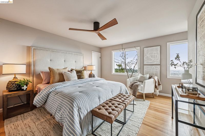 Bask in amazing Bay views with this luxurious, luxuriously-updated Oakland Hills residence with premium chefs kitchen. Exuding style, natural beauty, and awe-inspiring vistas, this fabulous home enjoys panoramic views of the San Francisco Bay - from the South Bay to the City Skyline to Golden Gate Bridge, Alcatraz, Mt. Tam & beyond. Featuring 3 bedrooms and 2.5 baths across 2,076 sf of modern living, this home is an exquisite integration of nature and design. Showcased by a custom-built, open-concept Chef’s kitchen this home is an entertainer’s dream with end-to-end windows looking out on a spacious deck and beyond to the Bay. Take in a stunning sunrise or sunset over the Bay from your spacious primary bedroom ensuite. 2 additional generously sized bedrooms on the main level deliver great utility with space for family, guests, or home office. Downstairs step into a grand, expansive approximately 560 sq ft family room that offers unlimited options for enjoyment. Location, gorgeous style, and amazing views – you can have it all! In addition to the kitchen, recent upgrades include roof, tankless water heater, energy efficient furnace, dual pane windows. Come home to 341 Rishell Dr and find your peaceful, natural balance in this one-of-a-kind home.