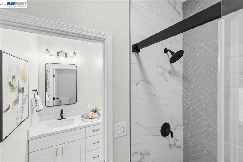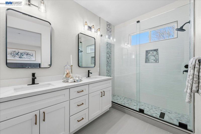 - Solid Surface, Split Bath, Stall Shower, Tile, Updated Baths, Double Vanity, Stone