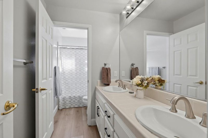 - Double Sinks, Stall Shower, Tile