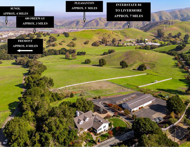 This exclusive, one-of-a-kind custom ranch property with over 100 acres and amazing views is a must see! The possibilities are endless. The MAIN SINGLE FAMILY HOME expansive residence boasts an impressive 3,912 +/- square feet, w/four bedrooms and 5 well- appointed bathroom. SEPARATE ADU 666 +/- sq. ft. w/ kitchen, bed, bath, living area, SEPARATE 6 STALL BARN 3268 +/- sq. ft. w/ possible living quarters with kitchenette & separate powder room, living area & additional separate room. The spacious floor plan promotes an easy flow between living areas, making it perfect for entertaining and relaxing. This home includes a full downstairs bonus room with a separate bathroom and a built-in bar complete with a sink & storage. This space offers versatility and potential for customization, making it ideal for a separate living suite, recreation room, home office, wine room, home gym or extra storage. The gourmet kitchen is equipped with a gas stove, and an extra room that can serve as an office or pantry. The large barn with separate rooms, one of which includes a kitchenette, living area, & half bathroom, potentially serving as sleeping quarters for livestock caretakers. Peaceful escape yet is just minutes from Sunol, Pleasanton, and Fremont, making it a great commute location.