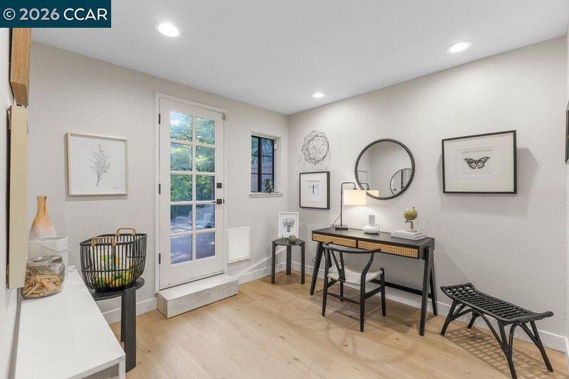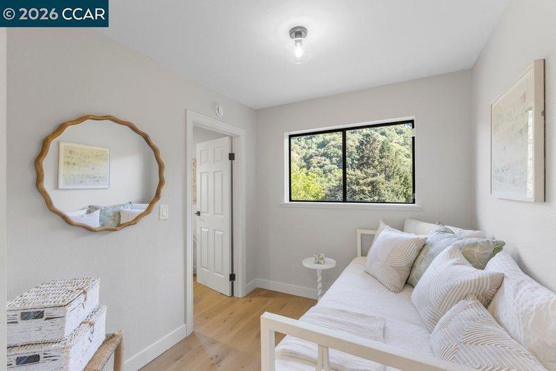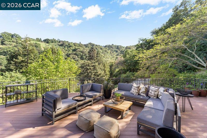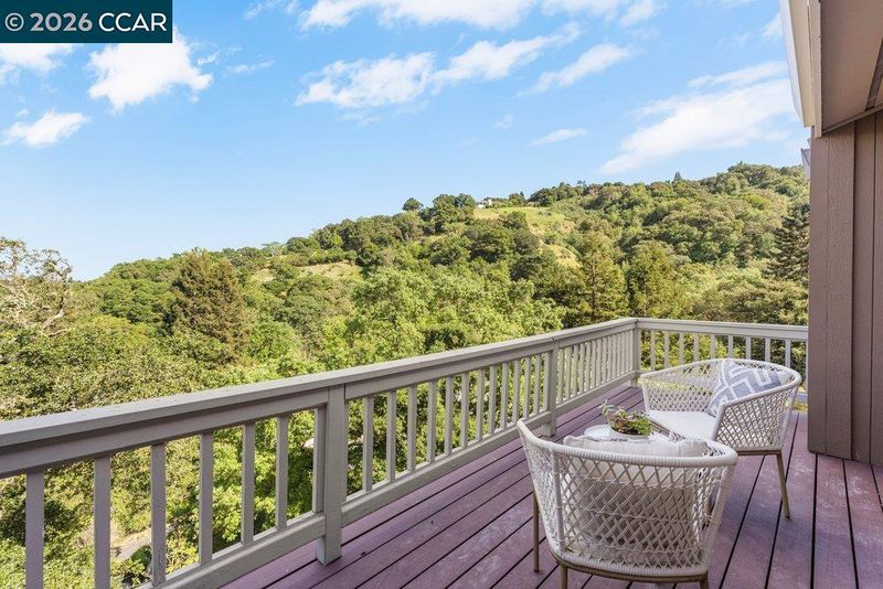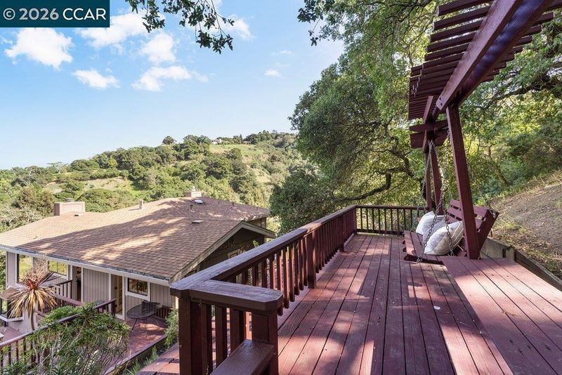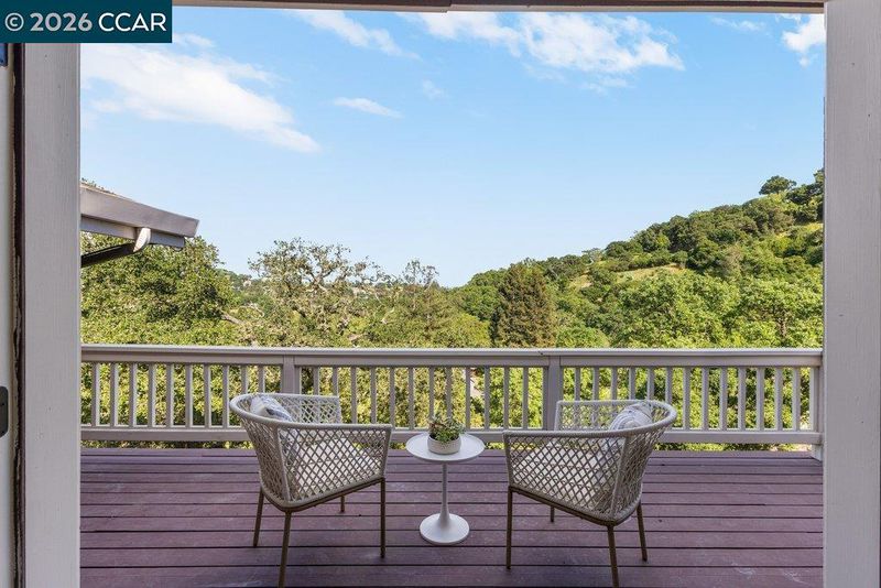 Enjoy breathtaking views from nearly every room in this beautifully updated 4-bedroom, 3-bath home. Flooded with natural light and surrounded by scenic beauty, this home offers a superb blend of luxury and serenity. Property features include: engineered hardwood floors, fresh interior paint, and custom lighting throughout. The main level offers a bright kitchen that opens to a spacious dining and living area, with sliding doors leading to multiple tiered decks—wonderful for seamless indoor-outdoor living. A separate living room with an expansive deck provides an ideal setting for entertaining or relaxing. This level also includes a bedroom, full bath, private office, and a walk-in pantry. Upstairs, you will enjoy a generous family room with a fireplace showcasing stunning treetop views. The spacious primary suite features a walk-in closet and private balcony, while two additional bedrooms provide flexibility for guests or work-from-home needs. Multiple decks create inviting spaces for dining, entertaining, play, or quiet retreat. The property is enhanced by mature landscaping, a dog run, and a long, private, estate-like driveway. Ideally located in the coveted Springhill neighborhood, just minutes from hiking trails, top-rated Lafayette schools, downtown, BART, and highways.