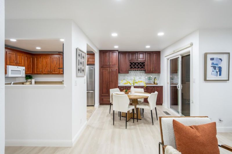 An incredible chance to own this charming condo in serene Lakeside Commons. This two-story home offers 2 bedrooms, 2 bathrooms, and 1,212 SF of living space on a 1,980 SF lot. External stairs lead to a deck entrance opening to a bright, airy floorplan. The interior boasts new paint and flooring, while the spacious living room is filled with natural light through dual-pane windows. The recessed lighting and electric fireplace create a cozy atmosphere. The semi-open kitchen has modern appliances including brand new refrigerator, granite countertops, and a dining area with built-in cabinets. Sliding doors open to a balcony overlooking the pool. First floor also offers a bedroom, bath, and laundry with a washer/dryer. Upstairs features a bedroom with a closet, en-suite bathroom with a standing shower, tiled walls, and a vanity. Additional amenities: 1-car garage, designated carport, pool, spa, gardens, ponds, guest parking. Located in desirable Cambrian Park, very close to Los Gatos downtown with San Jose prices. Walking distance to top schools such as Carlton/Union/Leigh. Nearby Norman Y. Mineta Highway, parks and hospitals provided convenient commuting and living.
