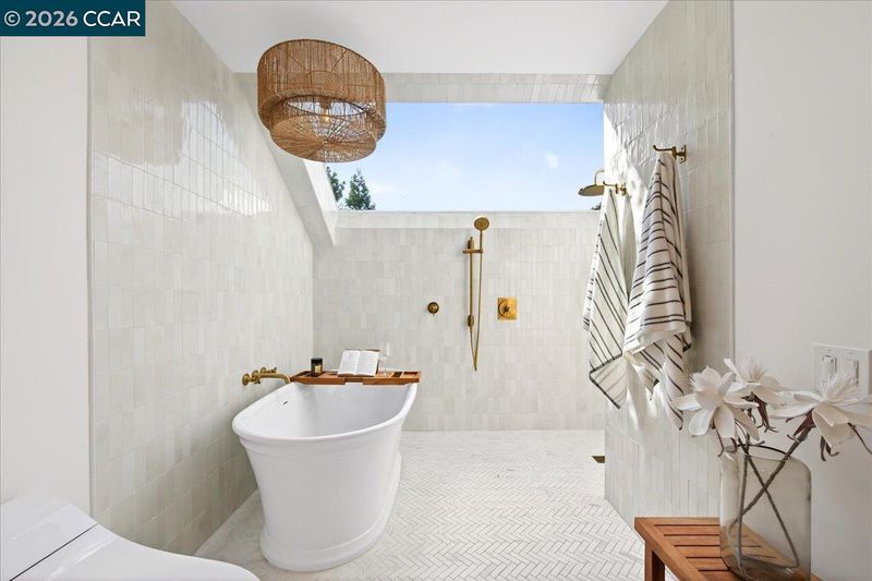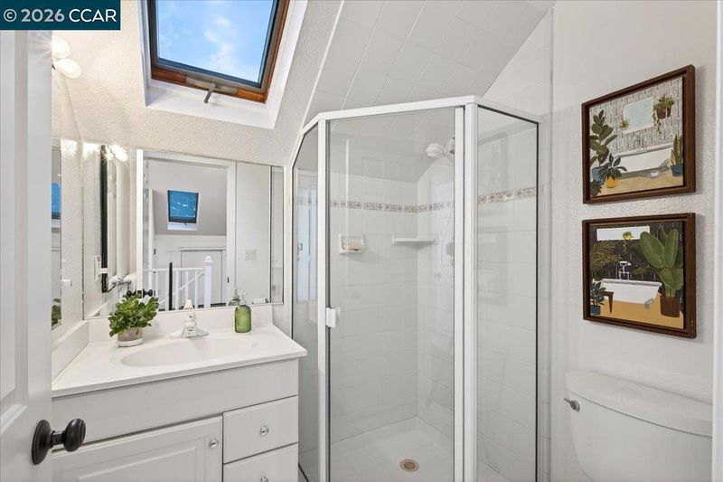 Shower Over Tub, Skylight(s), Solid Surface, Stall Shower, Tile, Updated Baths, Stone
