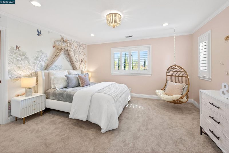 Grand Blackhawk estate. Timeless architectural detailing. Park-like .6 acres. Cul-de-sac. 4770+/-SF. 5 bds. 5.5 UPDATED bthrms inclds main-level guest ste & 385+/-SF detached guest cottage. Soaring, coffered & exposed beam ceilings. Custom millwrk. Crown, chair rail molding. Recessed ltg. French Oak & plush carpeted flrs. Dramatic split frt staircase, bk staircase. Multiple French drs to bkyd. Contemporary fixtures. 2-story foyer. Formal living rm w/frpl. Formal dining rm w/pvt patio. Butler’s pantry. Chef’s kitchen. Granite counters. Subway tile bksplsh. Custom cabinetry. Island/brkfst br. Wtr filtration systm. Viking 6-burner cktop. 3 Dacor ovens. Gaggenau steamer. Casual dining rm. Expansive fam rm w/frpl. Wet bar, frig, sink. Staircase to 400+/- bottle wine cellar. Upper-level office/library. Primary ste w/frpl, pvt balcony. Dual walk-in closets, dressing area, luxurious en suite. 2 bdrms share Jack & Jill bthrm. Bkyd sanctuary. Southern exposure. Pergola, patios, solar-heated pool, spa, lawn, lush garden bds, new lighting, Rachio irrigation. Dual HVAC. 4-car garage. Tesla charger. Laundry/mudrm. Pool bthrm. 2nd dw. Midway betwn Falls & Lakeside Clubhouses & golf courses. Near Spts Complex, Olympic pool, Fitness Ctr. Top-rated SRVUSD schls. Downtown, freeways, Mt. Diablo.