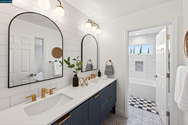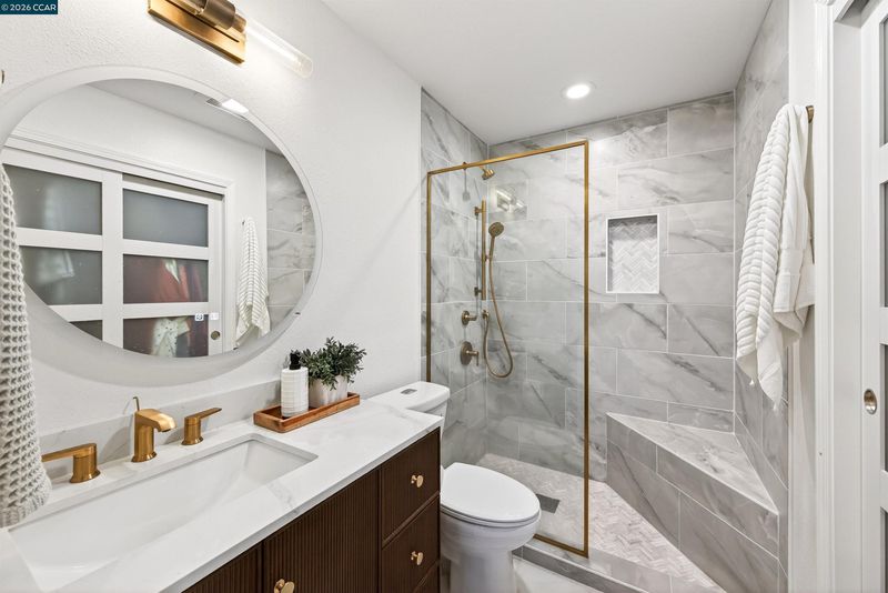 Shower Over Tub, Solid Surface, Split Bath, Stall Shower, Tile, Updated Baths, Closet, Double Vanity, Jack & Jill, Multiple Shower Heads, Stone, Window