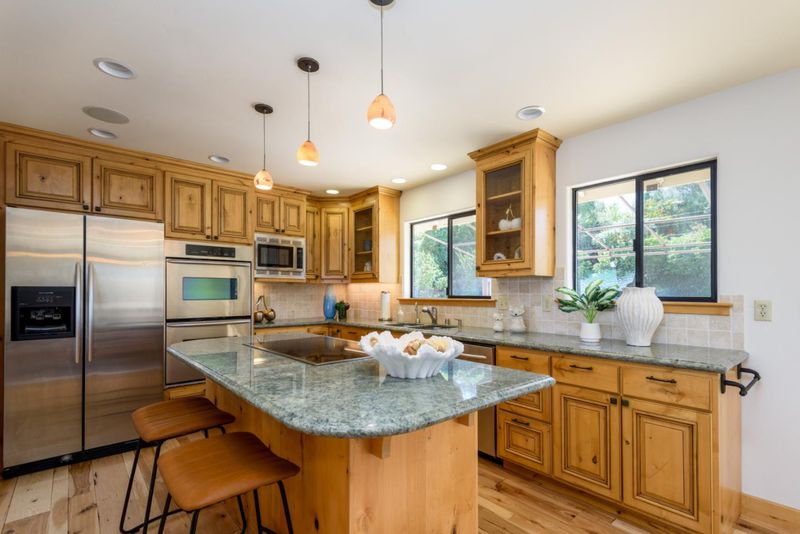 Welcome to 1082 Eden Bower Lane. Charming rustic home offering 2,430 square feet of light-filled living space. Set on a 10,385 square foot lot, this well-maintained property features 3 bedrooms and 3 baths, a light-filled living room with a gas fireplace. The kitchen includes granite countertops, stainless steel appliances, and a granite island with an induction cooktop. The dining area opens to the backyard and sparkling pool, creating the perfect space for entertaining. Refinished hardwood floors, fresh paint, and solid Hickory wood doors throughout. The lower level offers a versatile, expansive family room with two ceiling fans and a cozy gas fireplace. Additional highlights include an oversized two-car garage with a workshop area and built-in cabinets. The garage floor is finished with a fitted floor mat. Easy access to commuting and top-rated schools.