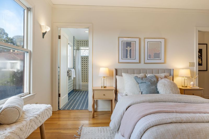 Set on a beloved Upper Rockridge street, 4800 Proctor carries a sense of continuity and care rarely found. Held in the same family since before its thoughtful 1994 rebuild, this classic Tudor has been a place of gathering, light, and everyday joy for decades. Enter to high ceilings, abundant natural light, and timeless Tudor details for a welcoming first impression. The spacious living room is a true showpiece—hardwood flooring, a beautiful fireplace, and picture windows that frame the outdoors light up this welcoming space. The eat-in kitchen opens seamlessly to a generous deck overlooking the rear yard, an ideal setting for morning coffee or dining alfresco. The adjacent dining room looks out to the front porch and captures peaceful bay views, making everyday meals feel just a little more special. A lovely bedroom and full bath complete the main level. Upstairs, two light-filled bedroom suites provide private retreats, each with its own full bathroom. An office nook is great for those that work from home or those searching for a quiet reading or hobby nook. Just blocks from Lake Temescal Park, AC Transit, The Village Market and Terrace Coffee Shop, and all the small moments that make this neighborhood so cherished, this is a home rooted in warmth, community, and possibility.