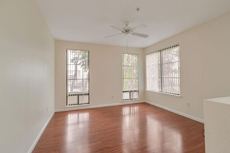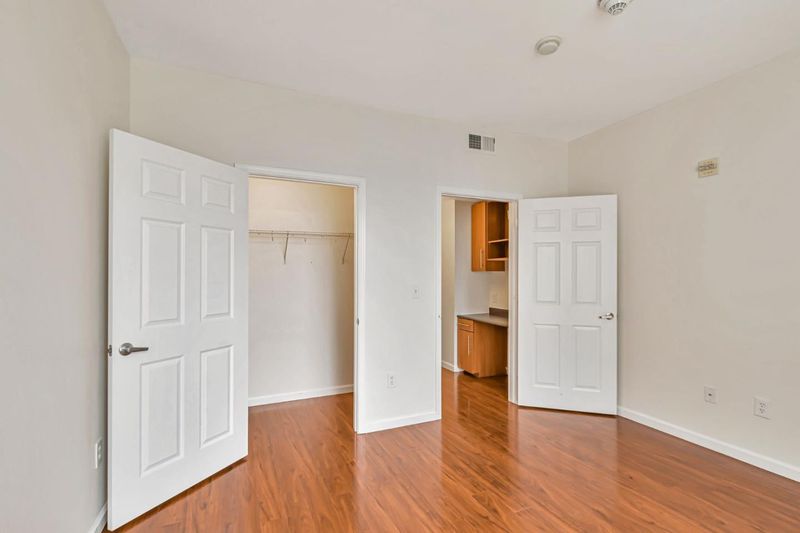 Urban energy meets modern comfort in this beautifully designed 2-bedroom, 2-bath condo near the heart of downtown San Jose. Step inside to discover soaring ceilings, sun-splashed interiors, and rich laminate flooring that adds warmth and style throughout. The open-concept kitchen is a standout with dark wood cabinetry, granite countertops, and sleek, modern finishes. The spacious primary suite includes a private bath and a generous walk-in closet. A built-in desk nook offers the perfect space to work from home or study. In-unit laundry, an extra storage unit, and access to community perks including a fitness center, pool, spa, BBQ area, conference room, and garden seating elevate everyday living. Standard sale (not REO). Responsive seller, clean disclosures, smooth escrow. Located minutes from San Jose State, SAP Center, local dining, nightlife, and easy freeway access, this move-in ready condo blends comfort, location, and low-maintenance living in one unbeatable package.