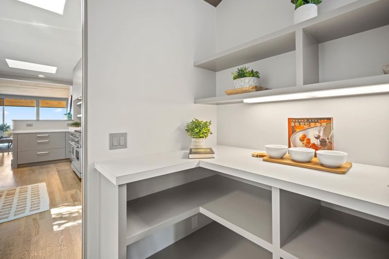 - Countertop - Marble, Exhaust Fan, Garbage Disposal, Microwave, Oven Range - Gas, Pantry, Refrigerator, Skylight