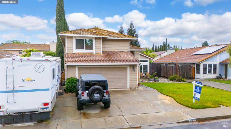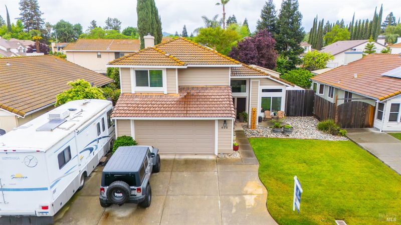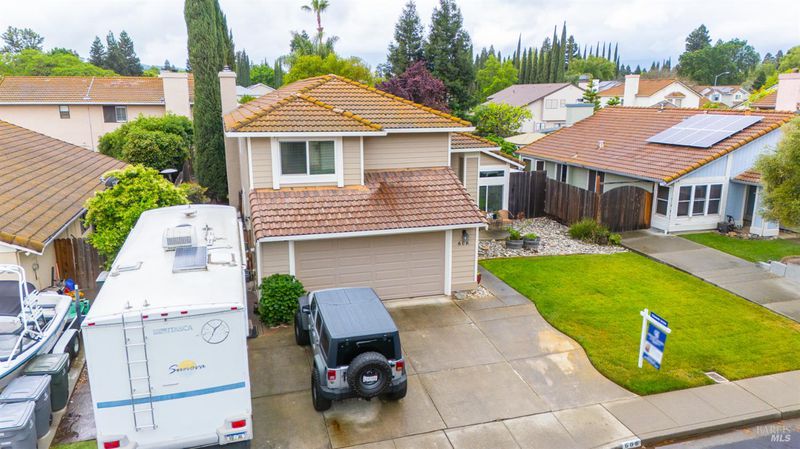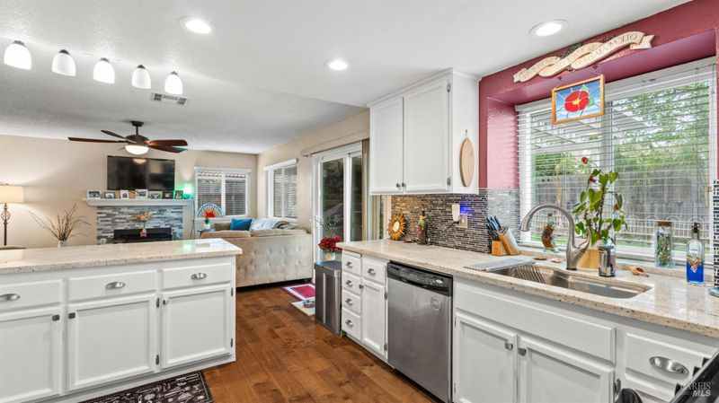 Welcome to this beautiful home on Sunnyvale Place! This spacious 5-bedroom, 2.5-bath residence offers approximately 2,320 sq ft of comfortable living space, thoughtfully designed for both everyday living and entertaining. The home features a formal living room, dining room, and a separate family room complete with a cozy pellet stove fireplace. The updated kitchen showcases granite countertops and modern finishes, perfect for any home chef. Enjoy the convenience of a downstairs bedroom with an adjacent half bathideal for guests or a home office. Upstairs, you'll find a generously sized primary suite with a private bathroom and a skylight that fills the space with natural light. Additional upgrades include triple-pane windows, a whole house fan, hardwood flooring downstairs, newer carpet upstairs, and a new HVAC system installed in 2020. The home also features front security screen doors and a reverse osmosis system located in the garage. Outdoor and functional highlights include RV parking, a side garage suitable for a small boat or extra storage, and an impressive 18x19 air-conditioned shop in the backyard. Ideally located near schools, a hospital, shopping, restaurants, the outlets, and with easy access to I-80. Residents also enjoy access to a private park maintained by the HOA. Don't miss the opportunity to own this well-appointed home in a convenient and desirable location!