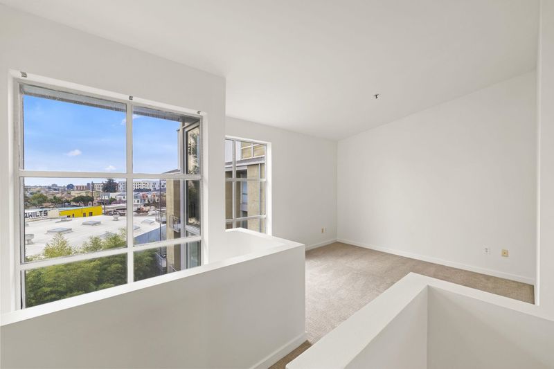 Stunning 1493 sq. foot Loft in NOBE; one of the East Bay's hottest neighborhoods. This fabulous two-level top-floor residence has 2 Bedrooms & 2 Bathrooms; one on each floor. Expansive living room w/dramatic 2-story windows & view of the East Bay Hills. Floorplan has incredible flow. Lofty ceilings create a feeling of abundance throughout. Upper primary bedroom suite features oversized windows w/view of Downtown Oakland, full bath, & spacious walk-in closet. Lower level guest bedroom has sliding doors which add flexibility for use as a dedicated office space. Guest bath is Jack & Jill style w/shower over tub. Kitchen opens to the main living area and features stainless steel appliances & gas stove. Handsome hardwood floors. Sexy floating stairs. The GreenCity Lofts bldg is LEED certified and has in-floor hydronic radiant heating (hot water & radiant heat included in HOA dues). 1 car parking. HOA Amenities: gated garage, 2 community EVCS, guest parking, Amazon lockers, bike storage, entry gates w/video intercom system. Bay Street shopping nearby, minutes to Temescal & Rockridge. Easy commute to SF & Greater Bay Area via multiple transit options. Emery-Go-Round shuttle to BART just 1.5 blocks away! WalkScore of 94. Nature & cycling enthusiasts will enjoy scenic trails nearby.