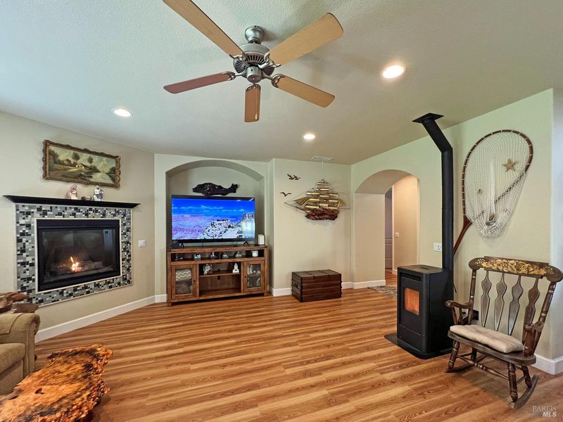 Don't miss out on this rare opportunity to own in the sought after Haehl Creek Subdivision. This lovely & spacious 4 bedroom 2.5 bath, recently painted inside and out, is upgraded with Allure Resilient Plank flooring throughout, high ceilings, Rinnai tankless water heater, whole house filtration filter and plenty of storage. Featuring an open concept great room, beautifully designed gas fire place, kitchen with quartz countertops, RO filter, center island and newer appliances. The private backyard has a built in pergola, for enjoyment year round. In the summer you can harvest your own fruit from the 11 fruit trees, including peach, apple, nectarines and figs as well seedless grapes. On either side of the home you have two 8'X12' Tough Sheds and a large cement pad with a 220 outlet, ready to install your future spa. This home has an abundant power supply with 5.1 KW of Solar and a Generac automatic Generator system. Situated within walking distance of Howard Memorial Hospital and minutes to downtown with easy access to the freeway. This property is beautiful, come take a look!