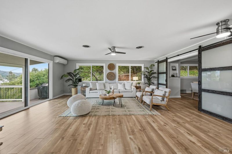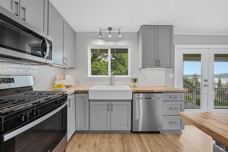 Welcome to your own peaceful slice of Lake County living. Perched on a private knoll overlooking beautiful Clear Lake, this recently renovated modern farmhouse blends rustic charm with comfortable, updated living. With 2 bedrooms, 2 bathrooms, aa extra room, and approximately 1,500 square feet of living space, this home sits on .75 of an acre, giving you plenty of room to relax, spread out, and enjoy the surrounding natural beauty. From the moment you walk inside, the expansive lake views immediately draw your attention. Large windows fill the home with natural light, creating a bright and welcoming atmosphere throughout the living areas, bedrooms, and an extra room. It's the kind of place where you can enjoy morning coffee while watching the lake or unwind in the evening as the sun sets over the water. Nearly every detail of the home has been thoughtfully updated. Recent renovations include a newer roof, updated windows, and beautiful maintenance-free decking with built-in lighting, perfect for enjoying the outdoors year-round. Inside, stylish barn doors and a calming custom color palette add character while maintaining a clean, modern farmhouse feel. The kitchen has been completely redesigned and serves as the centerpiece of the home. It features custom cabinetry, stainless steel appliances, butcher block countertops, and a classic farmhouse sink. Whether you're cooking a quiet dinner at home or hosting friends and family, the space is both functional and inviting. Both bathrooms have been tastefully remodeled with modern fixtures and elegant finishes that create a spa-like feel. Every upgrade throughout the home was carefully selected to combine style, comfort, and energy efficiency. Outside, the spacious 3-car garage provides plenty of room for vehicles, storage, lake toys, or workshop space. The oversized lot offers privacy and flexibility, whether you envision gardening, outdoor entertaining, or simply enjoying the peaceful surroundings. With its panoramic lake views, thoughtful upgrades, and serene setting, this property offers a rare opportunity to own a beautifully updated home that works perfectly as a full-time residence, vacation getaway, or potential short-term rental investment near Clear Lake.