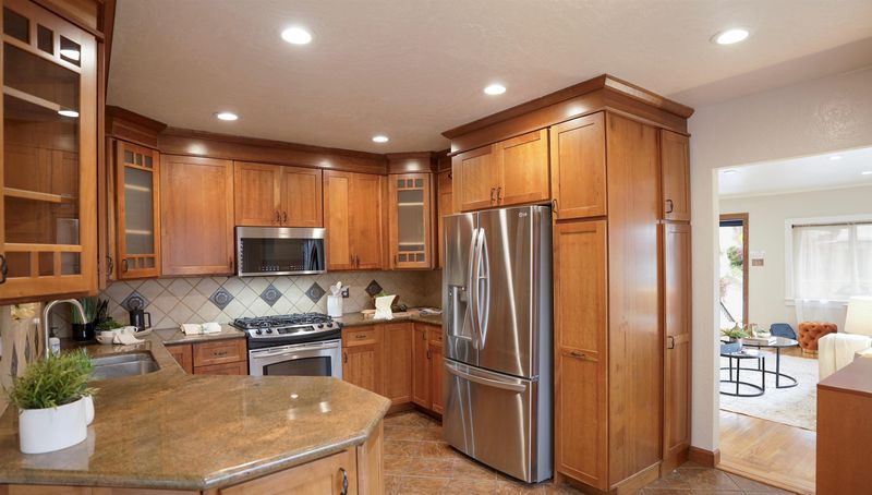 We welcome you to visit this charming and thoughtfully renovated home nestled on a spacious corner lot in Oakland’s Leona Heights neighborhood.This classic 1920’s home has 3 BRs Upstairs and a spacious In-law Space Downstairs, with a 2nd kitchen & full bath. A surprise Bay View from the cozy front porch draws you inside to the inviting living room with built-in shelving,large picture windows, and beautiful hardwood floors enhance this home’s timeless beauty. The tastefully updated kitchen has extensive custom cabinetry, granite counters, and stainless appliances. The deck off the kitchen is perfect for outdoor dining and grilling, complete with a tall pergola for shade cover. Downstairs, the private guest suite has its own entrance. It has newer floors, an updated kitchen, and a full bath. It’s a great space for extended guests, a home office, or a craft room. The lower level has its own dedicated yard space too, adding to the home’s indoor-outdoor versatility. A true gardener’s paradise!