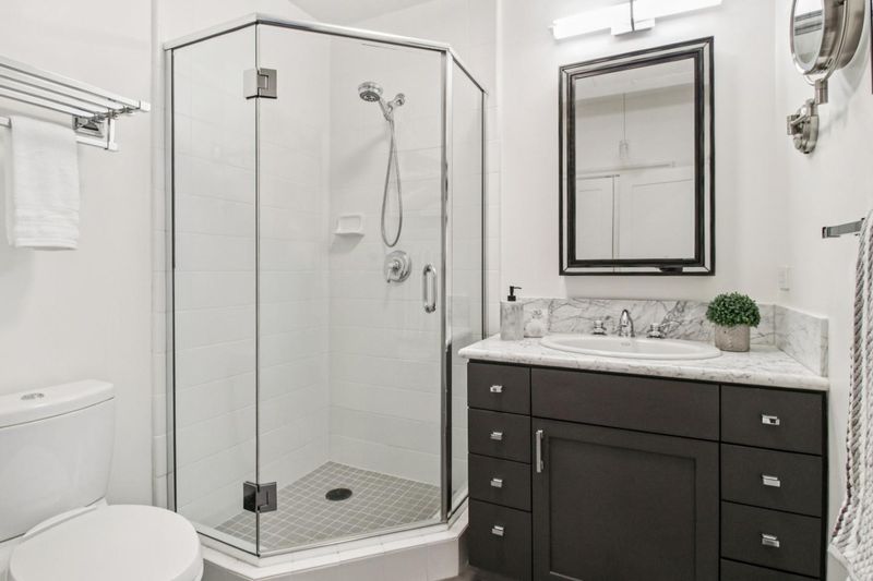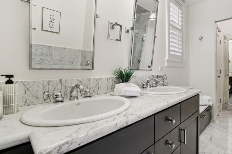 - Double Sinks, Shower and Tub, Tile, Stone, Updated Bath, Half on Ground Floor, Primary - Stall Shower(s)