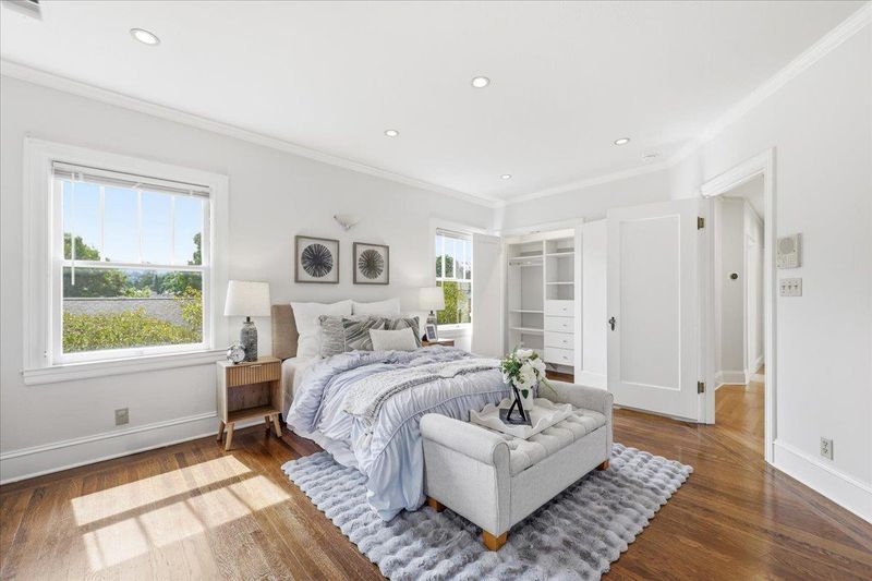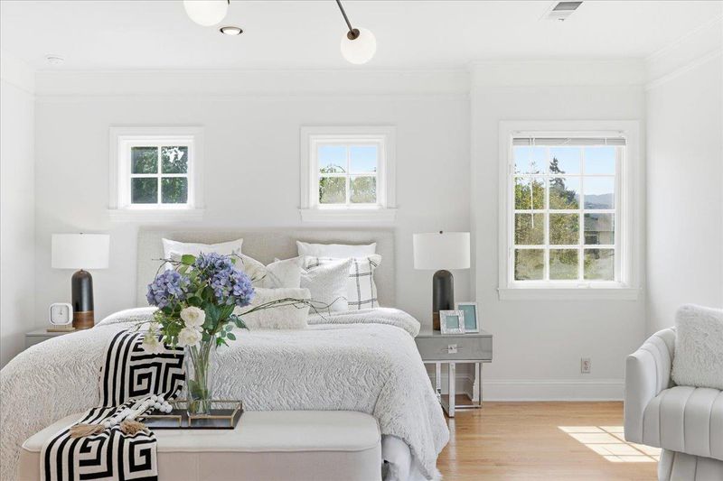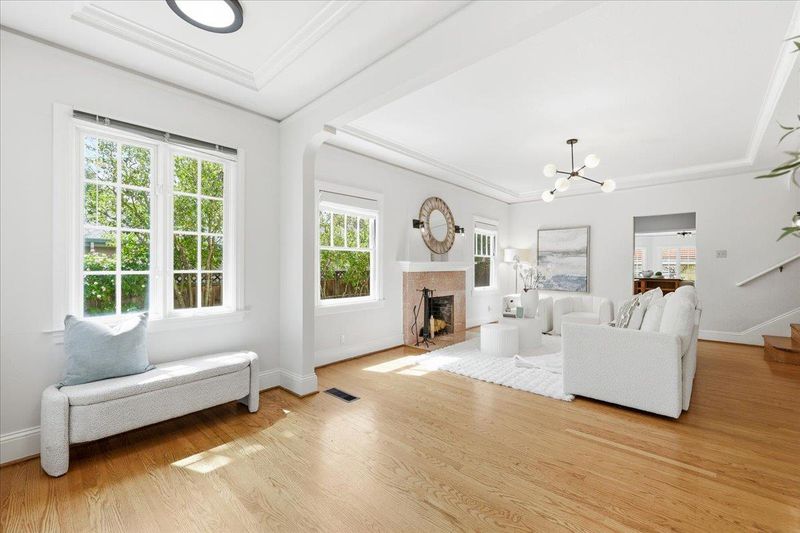 Beautiful 4-bed, 3-bath two story home in a desirable Redwood City location near Red Morton Park and vibrant downtown. Primary 2900 sqft plus a 630 sqft permitted accessory building, totaling 3,530 sqft on a 7,400 sqft lot, plus an additional 349 sqft basement! A welcoming front porch & spacious entry! The interior features a formal living room w/ fireplace, an elegant dining room w/ French doors & pleasant views, and a generous family room that opens seamlessly to backyard. The gourmet kitchen is equipped with wood cabinetry, a large island, a pantry, a breakfast area & high-end appliances including a 6-burner Wolf range with a commercial-style hood. Upstairs, a spacious primary suite has a fireplace, an updated bath, a huge walk-in closet & backyard views. Two additional bedrooms connect to a long office or sitting area lined with walls of windows. A hallway bath & a laundry also conveniently located upstairs. Hardwood floor throughout. A step-down basement with many windows offers space for recreation. The long driveway provides ample parking in addition to a detached 2-car garage. The permitted ADU has 1 bed, 1 bath, vaulted ceiling & kitchen, ideal for rental income, guests, or extended family. A rare opportunity to own a luxury property in the heart of Silicon Valley.