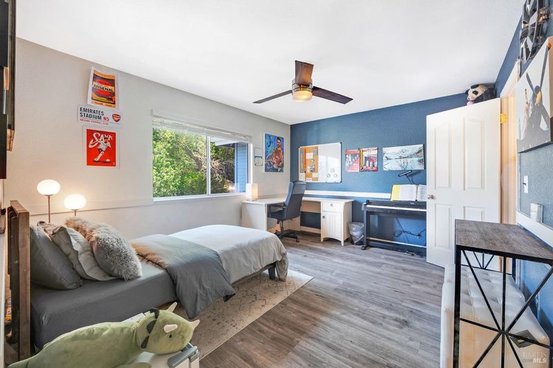 Welcome to your private Bennett Valley retreat, an entertainer's dream! From the moment you step inside, the grand two-story entry and sweeping staircase set a welcoming and elegant tone. The living room, with its soaring vaulted ceilings and cozy fireplace, invites you to relax, while the adjacent dining space is perfect for hosting memorable gatherings. The bright, updated kitchen is the heart of the home, featuring new stainless refrigerator and new convention stove on a central island, a sunny garden window, and a breakfast nook with beautiful hillside views. It opens effortlessly into a comfortable family room with a wet barideal for casual evenings or entertaining friends. Step outside through French doors to a spacious Trex deck designed for year-round enjoyment, complete with built-in seating, a pergola, and a fire table. The main floor offers a private guest bedroom and full bath, along with a convenient laundry room. Upstairs, unwind in the spacious primary suite featuring vaulted ceilings, a jetted tub, and a walk-in closet. Two additional bedrooms provide plenty of space for family or guests. With four bedrooms, generous living spaces, 3 car garage and seamless indoor-outdoor flow, this home truly has it all.