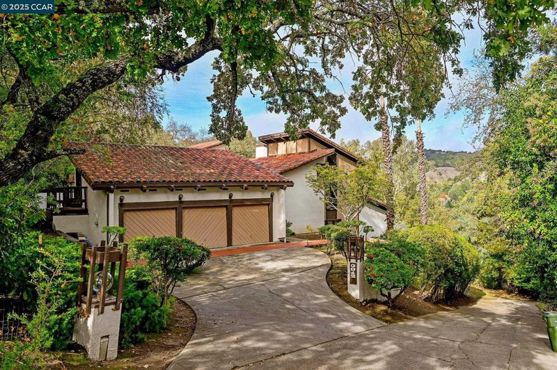 A distinctive architectural gem just minutes from downtown Lafayette, this elegant home boasts a unique and stylish design. Beautifully preserved original details, exposed beams, warm wood accents, dramatic soaring ceilings, and an open floor plan create a sense of space and light throughout. The home exudes authentic charm, offering solid construction and generous living spaces spanning approximately 4,093 square feet with five bedrooms and three full baths. There are two inviting living rooms—both with fireplaces, one highlighted by a remarkable stained-glass window—as well as a library, an office, and ideal spaces for both relaxation and entertaining. Walls of glass highlight serene views of Happy Valley, creating a seamless indoor-outdoor flow and access to a spacious deck perfect for gatherings. An expansive sport court offers endless possibilities for recreation, including pickleball or tennis, while a three-car garage with an upstairs bonus room and abundant storage adds convenience. Surrounded by nature on a .53-acre lot, with space for a potential ADU, this tranquil sanctuary is an entertainer’s dream—combining privacy, character, and style. Conveniently close to BART and the beautiful Lafayette Reservoir.
