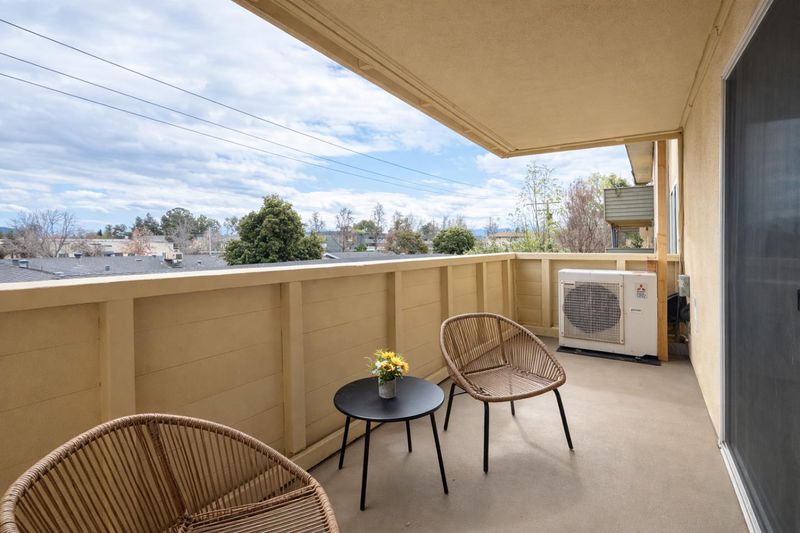 Wow! Best-value condo in an unbeatable location!!! This quiet, spacious unit has been fully remodeled and features an upgraded kitchen with custom cabinetry, a luxury refrigerator, and in-unit laundry. Enjoy beautifully updated bathrooms with upgraded shower and finishes, plus custom closet organizers in primary bedroom! Floor-to-ceiling bedroom windows face southeast, overlooking mountains and open sky away from the community, offering unobstructed views and abundant natural light. It also includes engineered wood floors, a large private balcony, and individual AC units in every room for personalized comfort. The well-maintained community offers a heated swimming pool, secured underground garage parking, an additional storage unit conveniently located on the same floor, and ample extra parking within gated areas. Tucked away on a quiet street yet just steps from restaurants, shopping, and daily conveniences along El Camino Real, with quick and easy freeway access. An exceptional opportunity make this your HOME!