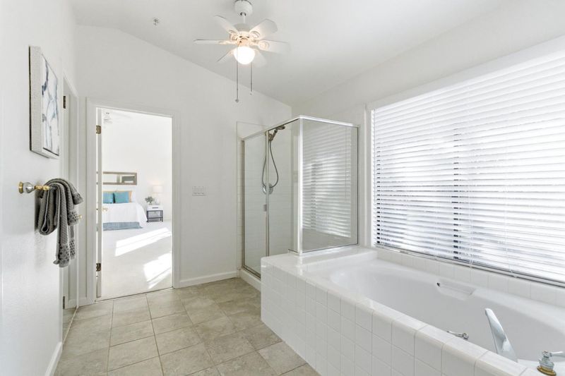 - Double Sinks, Full on Ground Floor, Primary - Stall Shower(s), Shower and Tub, Stall Shower, Tile, Tub in Primary Bedroom