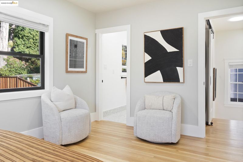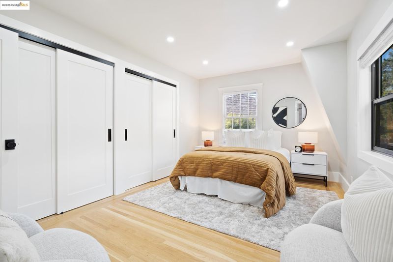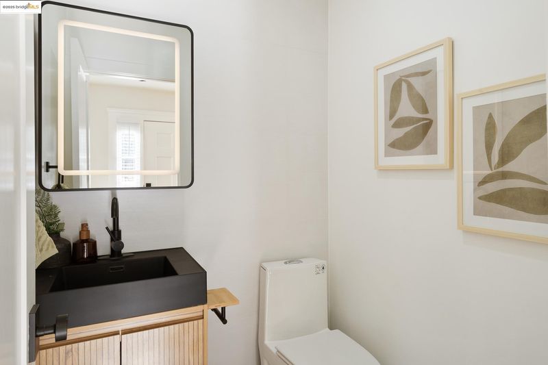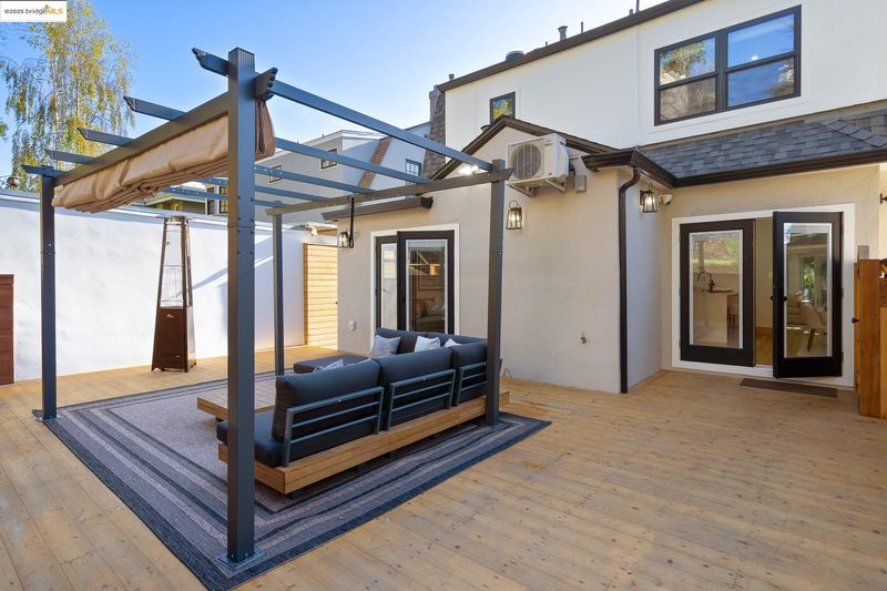 Open kitchen with designer quartz counters, Janska 6 burner commercial range, pot faucet and stainless appliances. Adjacent dining area and separate den space located off kitchen, both with doors flowing onto rear decks and rolling grassy yard. Built-in Sonos speakers in the dining and living room, plus two half baths located on the main level of the home. All bedrooms located upstairs including the primary suite, hall bathroom and convenient laundry closet. Recent system updates include new electrical, 30 year roof, front and rear facing windows, HVAC+AC with Nest Thermostats, EV charger and video security system. Entire house is both cable and HDMI wired. The lower level of the home offers ample room for storage and the detached two-car garage is a perfect flex space ripe with opportunity. Located just blocks from the award-winning Crocker Highlands Elementary, wonderful shops and restaurants of Lakeshore Avenue, Saturday Farmers Market, the historic Grand Lake Theatre, beautiful Lake Merritt and offering quick Bay Bridge access to San Francisco.