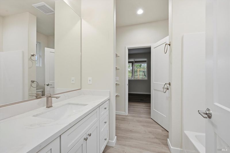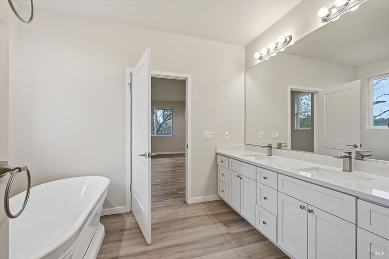 - Double Sinks, Low-Flow Shower(s), Quartz, Shower Stall(s), Soaking Tub, Walk-In Closet