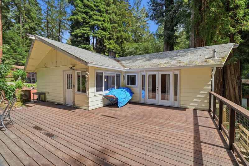 Nestled among the trees and surrounded by nature, this charming Boulder Creek home is a true must-see. This 3 bdm,2 bth home offers 1,602 sq ft of warm and welcoming living space,perfectly blending comfort with the beauty in its serene setting. Step inside to discover soaring open-beam and high ceilings that create an airy, spacious feel, while abundant natural light pours in through splendid oversized windows. An inviting living room, complete with a cozy fireplace, is the perfect place to relax and unwind. The kitchen is thoughtfully equipped with a dishwasher, oven/range, and refrigerator, and flows into a dining area, ideal for both everyday living & entertaining. A mix of carpet and durable vinyl/linoleum flooring adds comfort and practicality throughout the home, while the interior laundry area provides added convenience. Expansive decks allow you to enjoy a tranquil creek welcoming nature into your backyard. Located just about 0.5 mile to Highway 9, this home offers easy access for commuting but still feels like a peaceful escape. Situated within the San Lorenzo Valley Unified School District, this property combines natural beauty, comfort and convenience in one special package.A home that is part of a welcoming community known for its natural beauty and relaxed lifestyle.