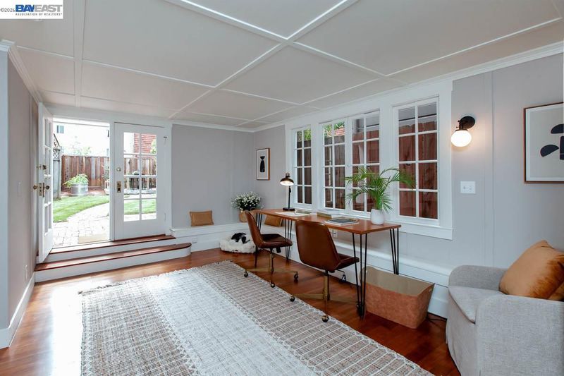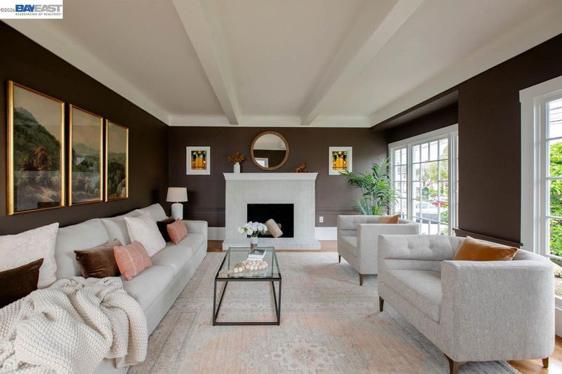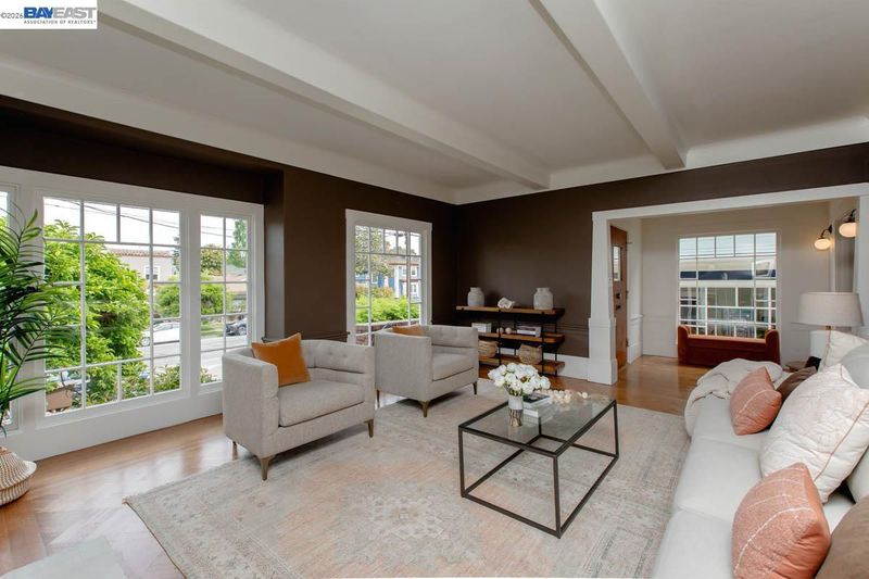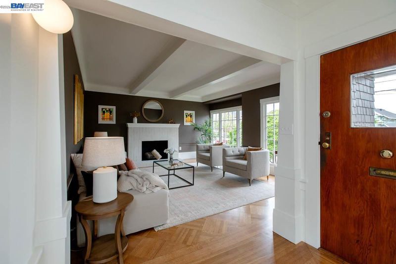 This picture-perfect 1906 brown shingle Craftsman has a wonderful Central Alameda location just minutes to Webster + Park St shopping/cafes/restaurants, the South Shore Center, Franklin Park, the SF Ferry and so much more! This spacious home features a flexible floor plan with formal living and dining rooms, two bedrooms, one bathroom and a kitchen with a large breakfast nook on the main level, plus a lower garden level with an additional four bedrooms, one bathroom, a home office and a laundry room. The lower level also offers separate entrances from the main level, creating attractive options for long or short-term rental income. Features include vintage hardwood floors, high + box-beamed ceilings (main level), a fireplace, chair + picture rails, crown molding, plus an updated kitchen + main bathroom. Includes fabulous clinker bricks on the exterior for added vintage charm! New light fixtures, fresh interior and exterior paint + refreshed landscaping. The detached 2-car garage provides off-street parking and/or storage. Delightful--both inside and out!