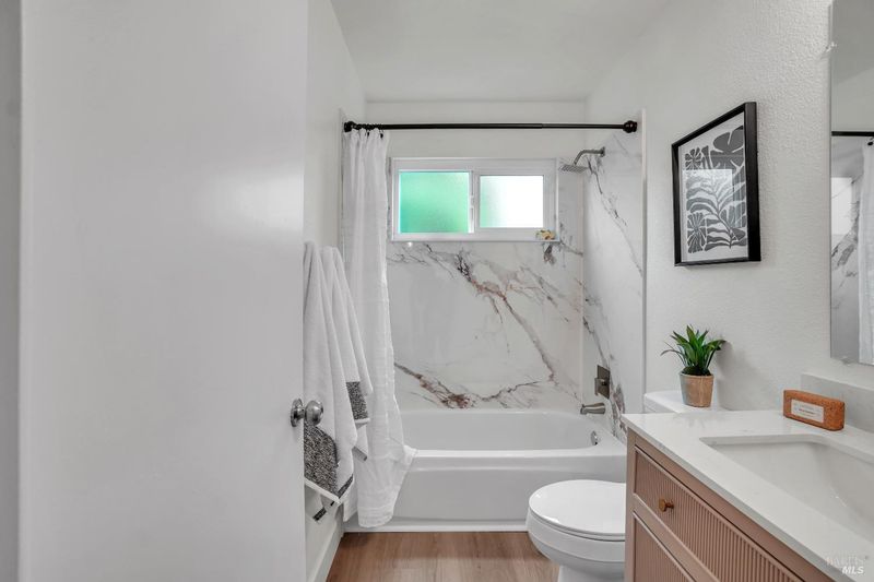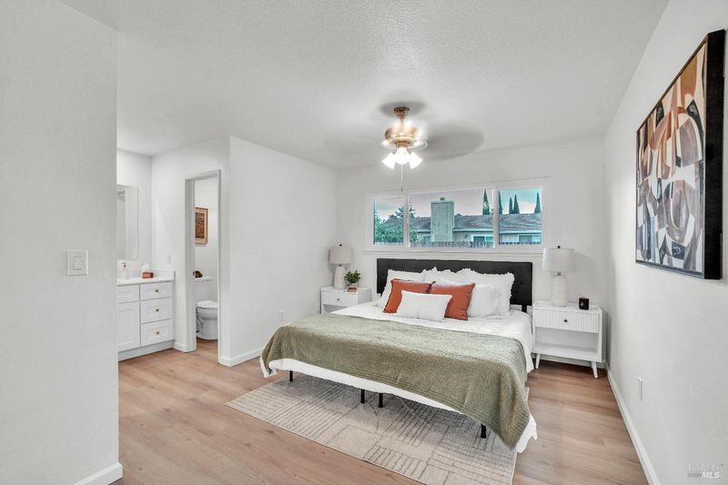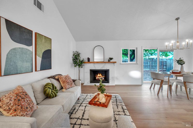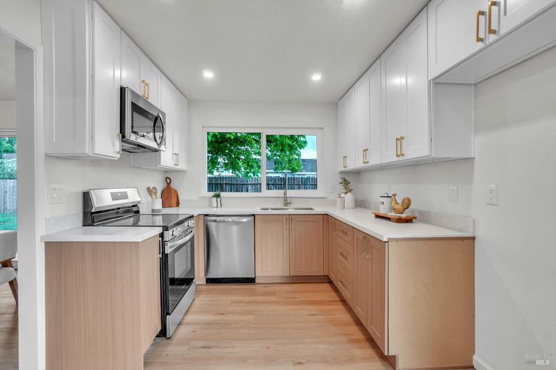 Welcome to this beautifully remodeled 3-bedroom, 2-bath home featuring stylish custom finishes and a thoughtfully designed layout. The stunning kitchen showcases modern two-tone cabinetry, sleek quartz countertops, stainless steel appliances, and a large window that overlooks the backyardperfect for both everyday living and entertaining. Enjoy multiple living spaces including a separate living room with vaulted ceilings, a cozy family room, and a dedicated dining area, offering flexibility and comfort. Two sliding glass doors flood the home with natural light and provide seamless indoor-outdoor flow. The spacious primary suite features dual closets, including a walk-in, and a beautifully updated bathroom with a custom tile shower. Additional upgrades include luxury LVP flooring, new windows, and a two-car garage. Ideally located just up the street from the newly renovated Samuel Goepp Park, and centrally positioned minutes from Highway 12, Travis Air Force Base, Fairfield, and Vacavillethis home offers both convenience and modern living at its best.
