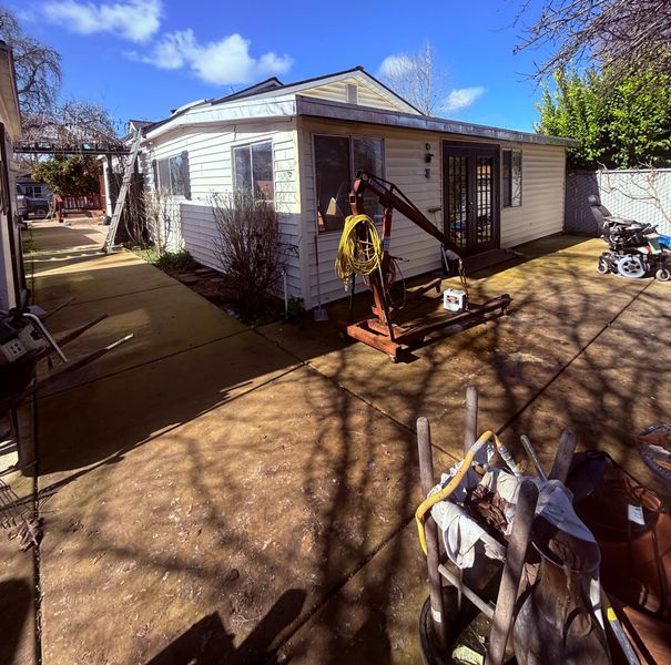 POTENTIAL ABOUNDS! With Upgrade of electric panel, HVAC, Gas Line, roof and hot water heater in place not much left to do. Wonderful opportunity! with Home near Sacramento River. Home has very large lot. Wheelchair/motor chair accessibility. Solar lease, Large rooms, possible 3rd bedroom, enclosed patio or room/rec room. Newer 2 story 8x12 shed plus large 15x20 shop. Fully fenced with security gate. Fruit trees, large cement patio. So much potential at a price to sell fast. AI generated photos to show its future potential.