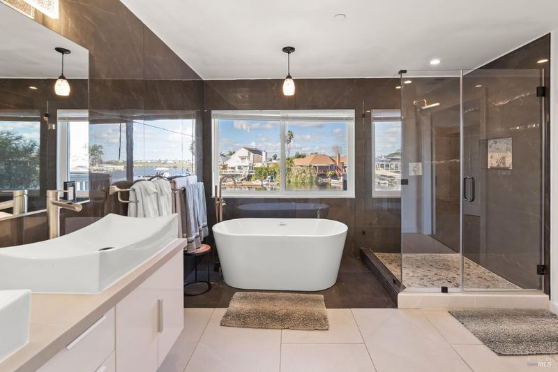Experience elevated waterfront living at 1642 Dune Point in Discovery Bay. Completely remodeled and offering 3,595 square feet of thoughtfully designed space, this impressive residence blends comfort, scale, and luxuryset against a stunning water backdrop that defines the Delta lifestyle. With NO HOA. The main level is designed for seamless indoor-outdoor living, featuring an open-concept layout that connects the living, dining, and kitchen spaces with ease. Expansive windows frame the water and fill the home with natural light, creating a bright and sophisticated atmosphere throughout. The kitchen serves as the heart of the home, showcasing stainless steel appliances, abundant cabinetry, generous prep space, and a large island finished with a striking waterfall countertopan elegant focal point that elevates both everyday living and entertaining. With 2 of the 6 bedrooms being on the ground floor and 5 bathrooms throughout. The flexible floor plan offers ample room for multi-generational living, guests, home offices, or lifestyle spaces tailored to your needs. Upstairs, the primary suite provides a private retreat with serene water views, a spacious ensuite bath, and access to a balconyperfect for quiet mornings or sunset evenings. Step out back to the expansive deck overlooking the water, ideal for hosting gatherings or simply enjoying the peaceful setting. Complete with your own 2 stall private dock, you'll have direct access to boating and all that Discovery Bay waterfront living offers.