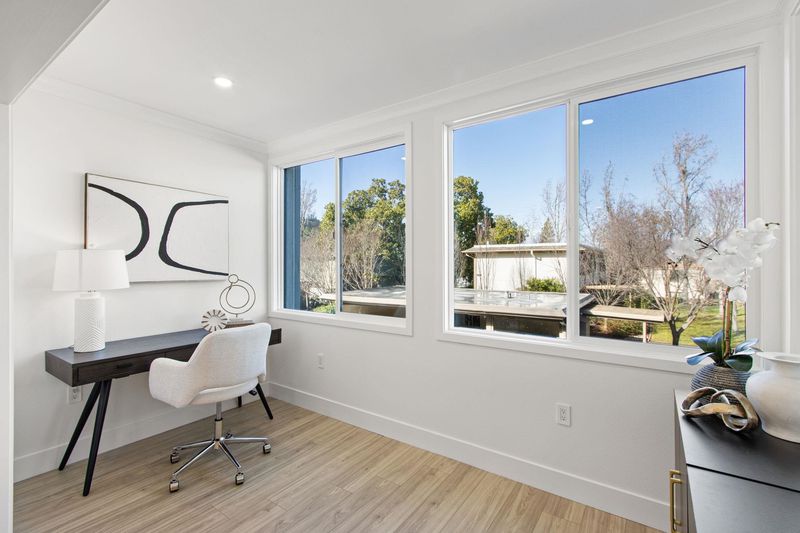Elegantly and extensively renovated and expanded Sonoma floorplan. Located at the end of Entry 2, this ground floor unit is flooded with natural light. Upon entering you are greeted by a foyer and well appointed full guest bath with modern finishings. The great room features open concept living, large windows, a spacious deck and an added electric fireplace, to be enjoyed on those cozy evenings at home. The deck has been partially enclosed to add additional square footage to the interior living space, creating a versatile multi-purpose nook that can be used as an office or hobby room. The chef's kitchen has been opened up to allow direct sight lines into the great room from the large kitchen island. Stunning white oak cabinetry stainless steel appliances and full backsplash will please the most discerning buyers. Extended cabinetry into the dining nook provides additional storage and prep space and has been completed with a beverage center to store your favorite drinks. This home has been expanded to include two full bathrooms, with high end finishings. Both bedrooms are spacious and bright and have been finished with a floor to ceiling closet organizing system. Rossmoor amenities are world class and reserved for 55+ residents.