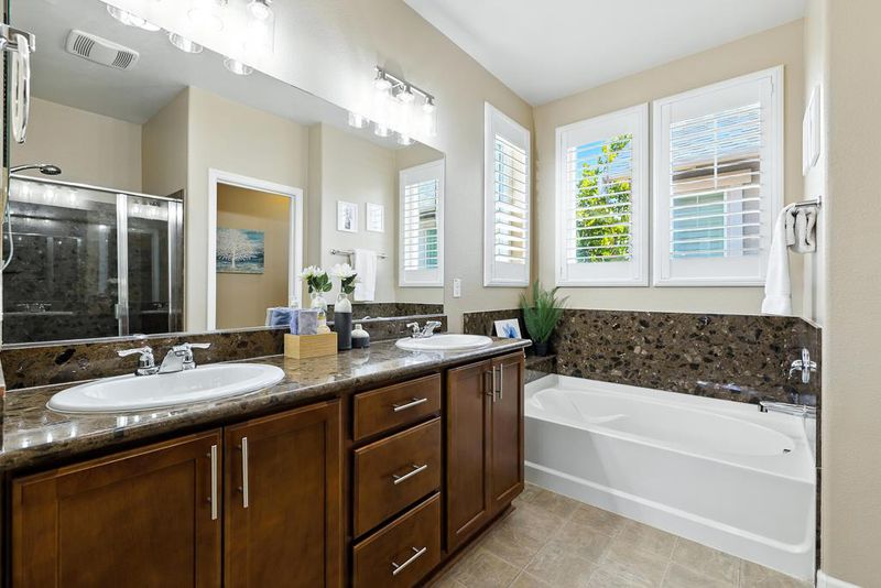 Double Sinks, Full on Ground Floor, Marble, Primary - Stall Shower(s), Primary - Sunken Tub, Showers over Tubs - 2+, Solid Surface, Split Bath, Updated Bath