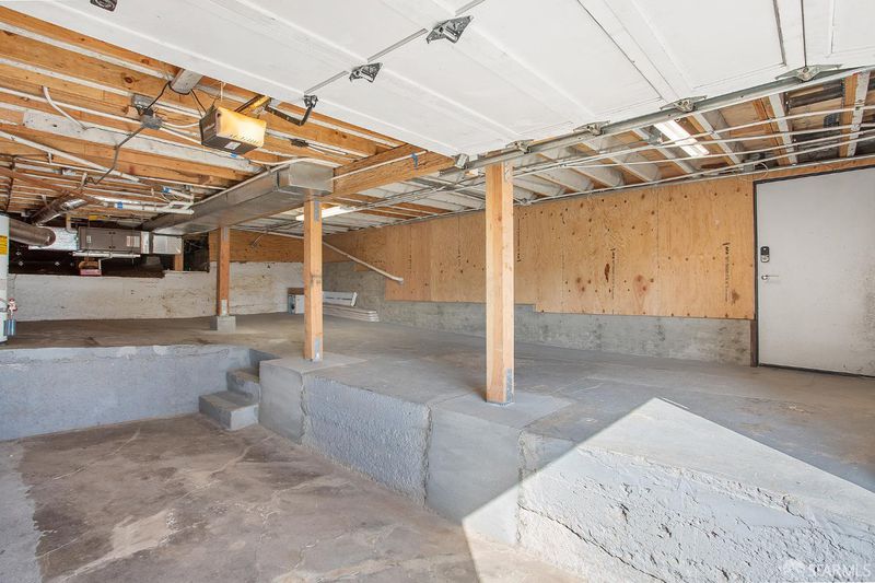Quintessential Bernal Heights house with a large garage for 1 car and landscaped backyard.