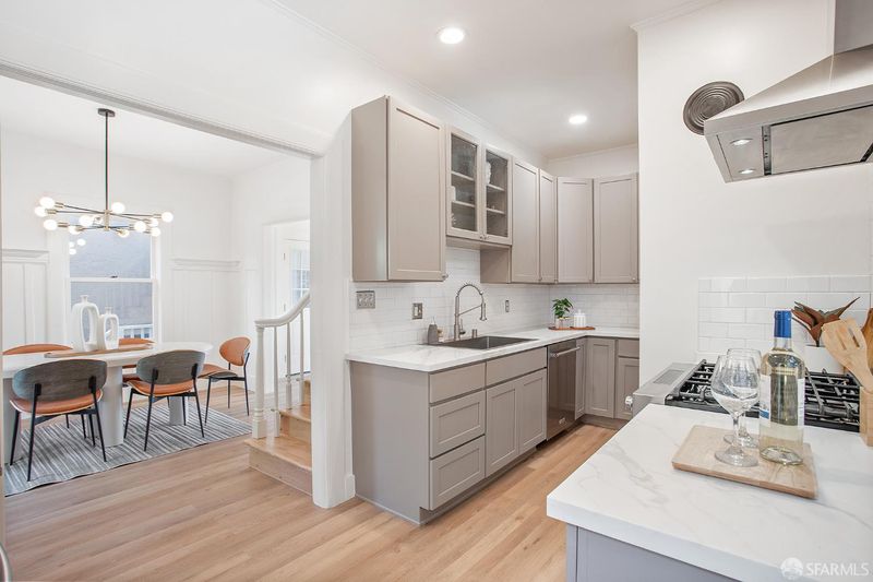 Built in the early 1900s and thoughtfully updated by the current owners, this charming Bernal Heights late Victorian home blends classic character with modern comfort. Recent improvements include a voluntary seismic retrofit including brand new front foundation, a remodeled kitchen and new flooring throughout. The main level features a bright, open entertaining space with a formal dining area and a contemporary kitchen appointed with new cabinetry, new quartz countertops, new sink, updated appliances, fixtures, and clean, modern finishes. Just off the kitchen, you'll find a convenient laundry area and a marble tiled bathroom designed for everyday relaxation. The laundry area and bathroom are both filled with natural light from skylights. Upstairs, two inviting bedrooms with attic access offer flexible storage and abundant natural light. One of the bedrooms is outfitted with a Murphy-style bunkbed that offers a smart, space-saving solution ideal for guests, children, or a home office. A private, fenced rear yard provides a peaceful outdoor retreat, complete with a patio ideal for lounging and entertaining, along with a turf area and a mature fruiting lemon tree. The basement offers generous additional storage, single-car parking, and easy access beneath the home. Ideally situated on the east slope of Bernal Heights, the home enjoys bay views, a sunny microclimate and close proximity to neighborhood hiking trails, staircases, parks, and recreation. Just moments from Cortland Avenue's vibrant restaurants, shops, and farmer's market, with convenient access to public transportation and freeways, this lovingly maintained home offers the best of Bernal Heights living.