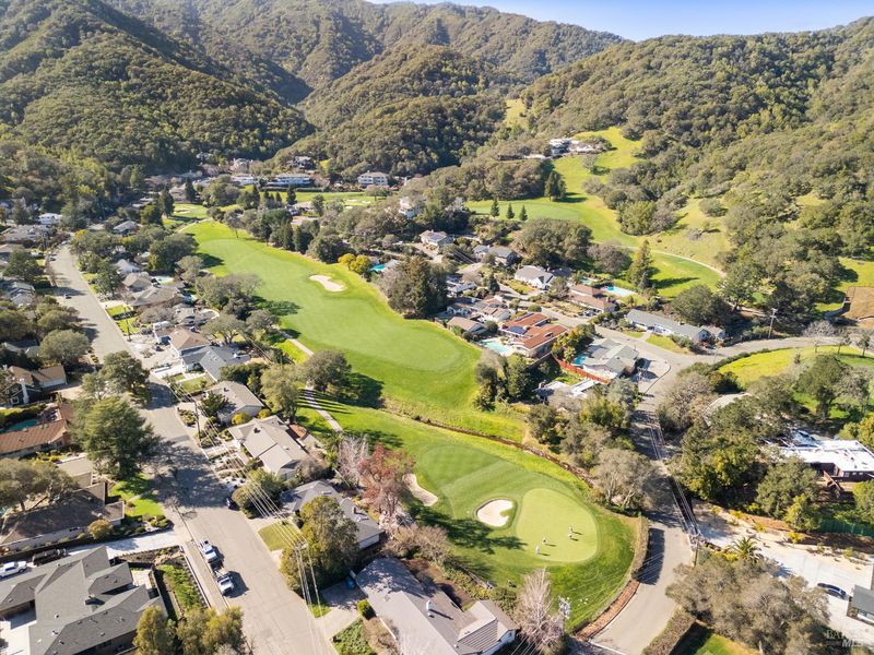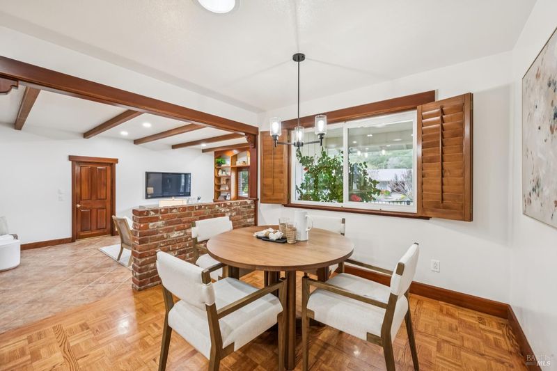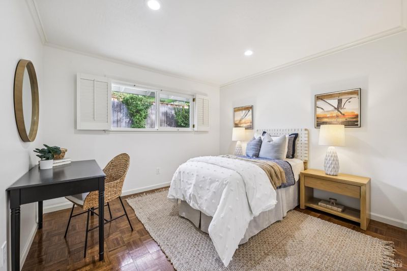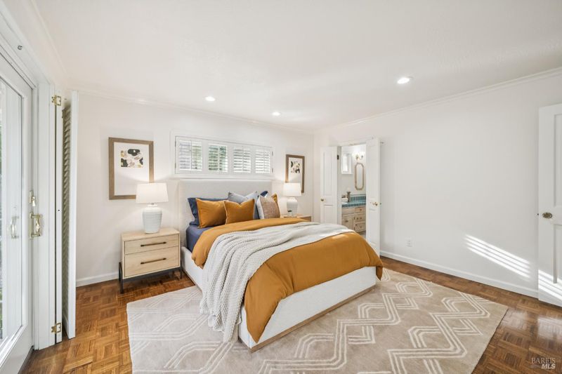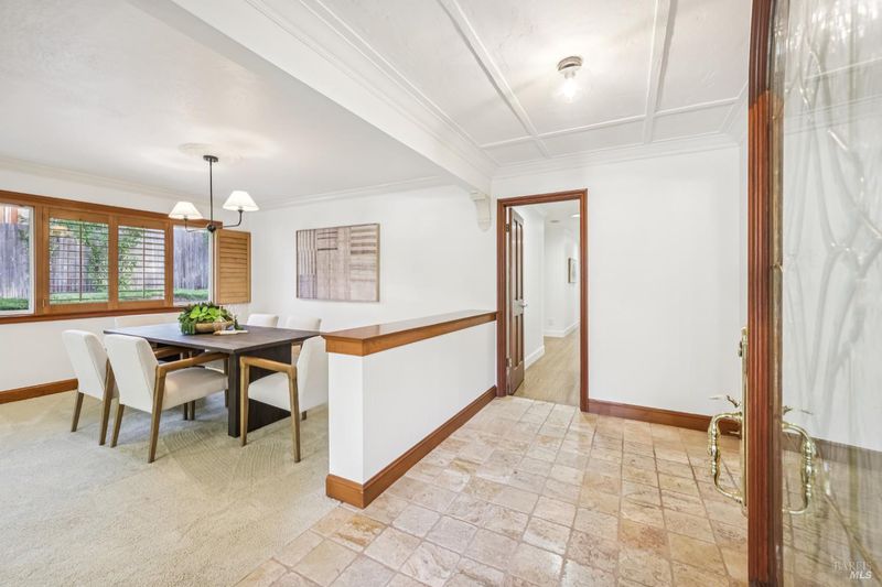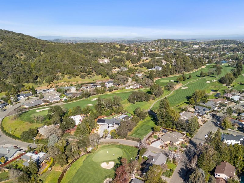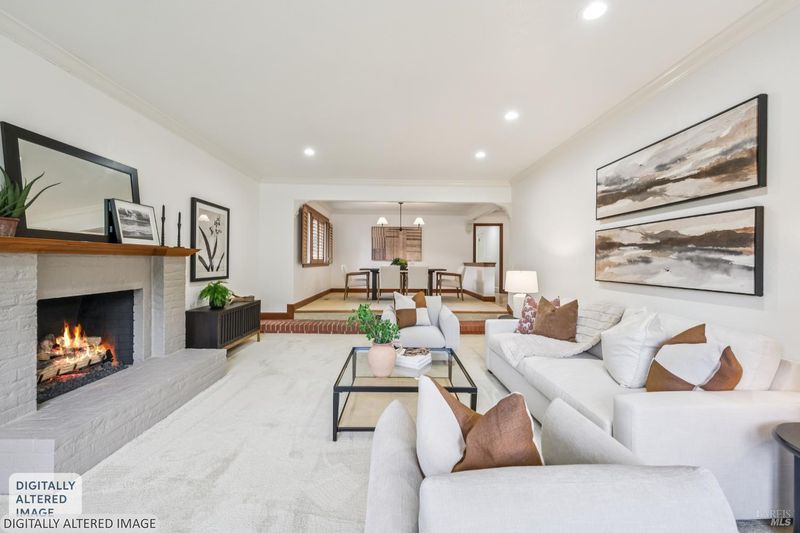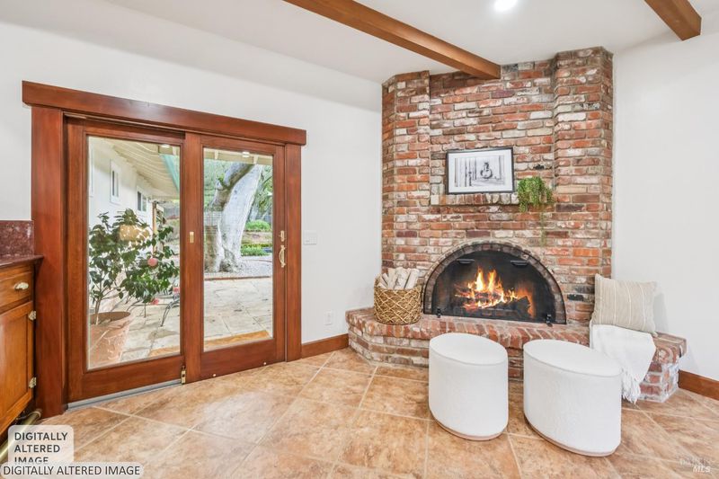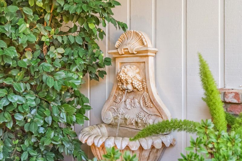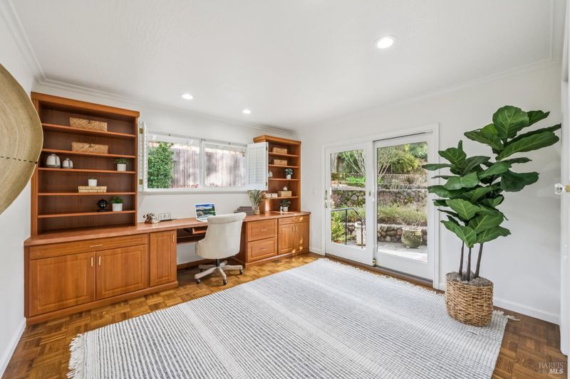 A special find in Marin Country Club, this single-level 4-bedroom, 2-bath home sits on a rare corner double lot offering space, privacy, and exceptional outdoor beauty. Inside, a large step-down living room with a fireplace and formal dining room create inviting spaces for entertaining, while the Mediterranean-inspired kitchen opens to a cozy step-down family room with its own fireplace and built-in shelving. One bedroom is thoughtfully designed as a dedicated office with custom built-ins. The primary suite enjoys direct access to the phenomenal backyard, featuring a lovely pool with an attached hot tub, beautiful rose gardens, and a park-like setting shaded by gorgeous heritage oaks. A pergola-covered brick patio is perfect for gatherings, while the upper parcel offers a tranquil koi pond with waterfall, a large grassy area, and open space beyond - truly a gardener's paradise!