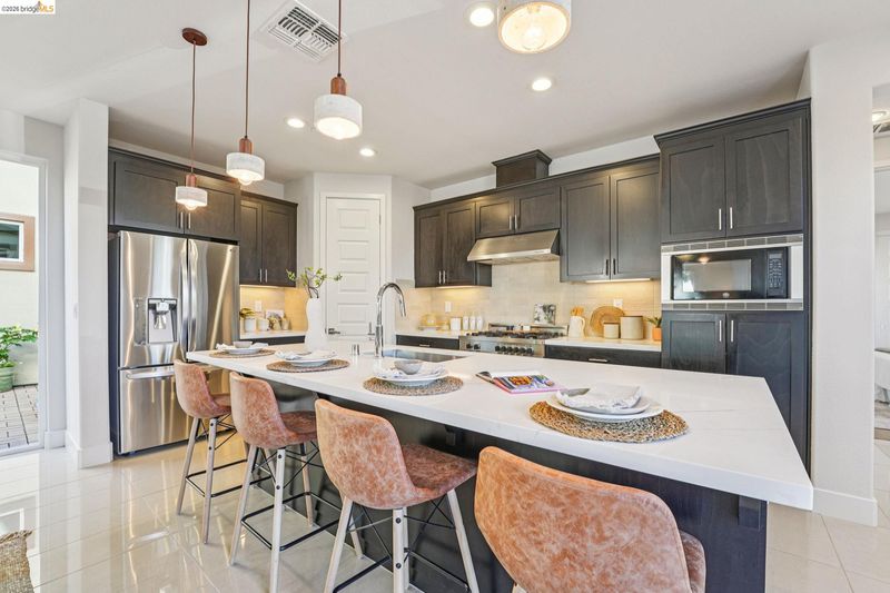 - Dishwasher, Gas Range, Plumbed For Ice Maker, Microwave, Refrigerator, Tankless Water Heater, Counter - Solid Surface, Disposal, Gas Range/Cooktop, Ice Maker Hookup, Kitchen Island, Pantry
