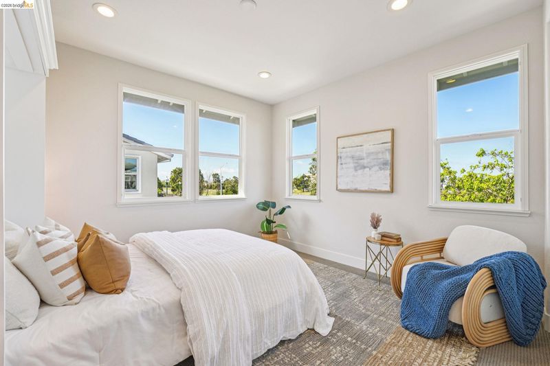 Rare opportunity to own one of the most sought-after models in a prime corner-lot location. This light-filled home features a desirable level-in entry, soaring 9-foot ceilings, and extensive upgrades throughout. Distinguished by its generous layout, the home features dual side yards, double wrap-around balconies, and abundant natural light throughout. The main level includes a full bedroom with ensuite bath - ideal for guests / extended family. The open-concept kitchen, dining, and living area flows seamlessly to two private patios, perfect for indoor-outdoor dining and entertaining. Upstairs, the expansive primary suite offers a private retreat with a wrap-around balcony showcasing Oakland and SF skyline views, a spa-like bath, and walk-in closet. Two additional bedrooms, a full bath, laundry room and a dedicated home office complete the 2nd level. Additional highlights include a 2-car garage with ample storage and a prime location just steps from the 8-acre Estuary Park, waterfront parks, playgrounds, and open green space. Enjoy easy access to Alameda Landing (Target, Safeway, Jollibee, and more), along with nearby marina trails, SF ferry service, Seaplane Lagoon, BART shuttles, and Spirits Alley. Don’t miss this exceptional opportunity to experience the best of Alamed Landing!