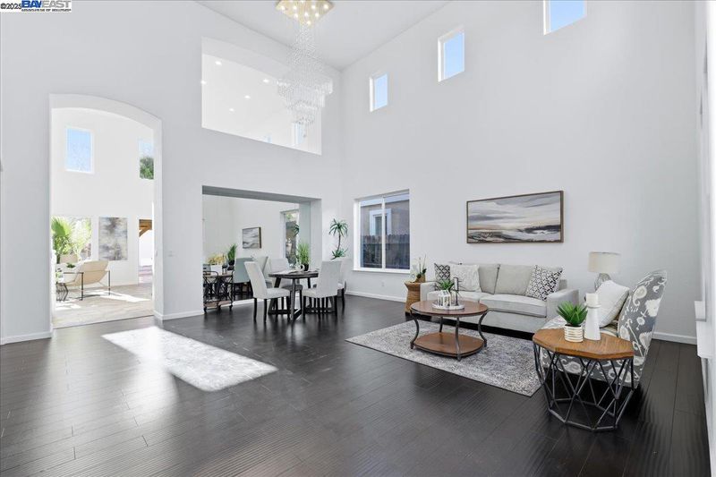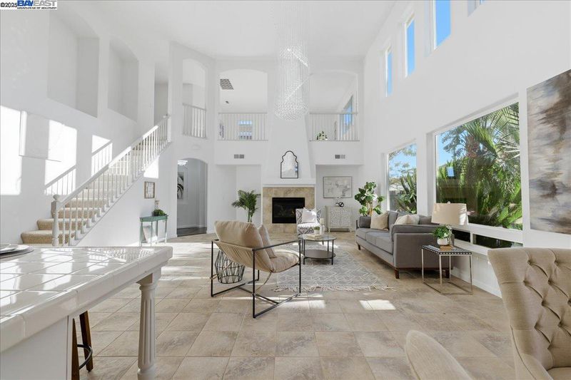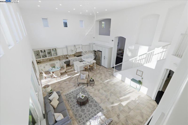 Beautiful home featuring soaring ceilings, abundant natural light, and views of the open space behind. The open floor plan includes a well-appointed kitchen with a gas range, stainless steel appliances, double ovens, ample cabinetry, and a large center island that connects seamlessly to the living and dining areas. The primary suite is located on the main level and offers a luxurious bath and walk-in closet. Upstairs includes a spacious loft, three bedrooms with generous closet space, and an upgraded bath with dual sinks. Recent updates include fresh interior paint and a new, beautiful chandelier. The landscaped yards and private backyard with patios and a pergola provide the perfect setting for outdoor enjoyment.
