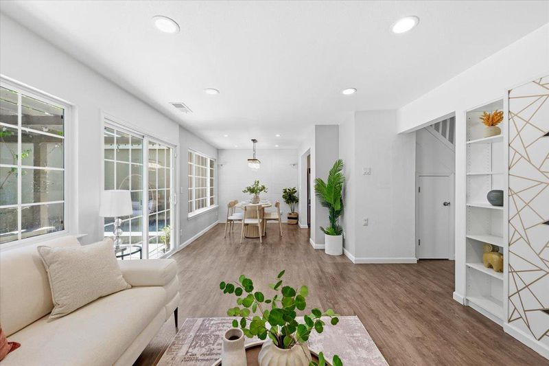 Beautifully upgraded townhome that truly feels like a single-family home! Located in one of the best spots in the community, this corner unit only shares one garage wall and has a backyard that opens right up to the park and poolsuper private and convenient. This home offers 2 bedrooms (with the option to convert to 3) and 2.5 bathrooms, with upgrades throughout. The kitchen has been fully remodeled with quartz countertops, a modern backsplash, new cabinets, and stainless steel appliancesclean, bright, and very functional. Youll love the natural light, updated flooring, and stylish touches throughout the home. The bathrooms have also been refreshed with new fixtures and countertops. Large sliding doors bring in tons of light and lead you to a cozy private patioperfect for relaxing or entertaining. Theres also an attached 2-car garage with plenty of storage, plus a built-in countertop and cabinets for extra workspace. The HOA includes a pool, clubhouse, and water . Great location with parks, shopping, and freeway access nearby, plus highly rated Almaden schools.