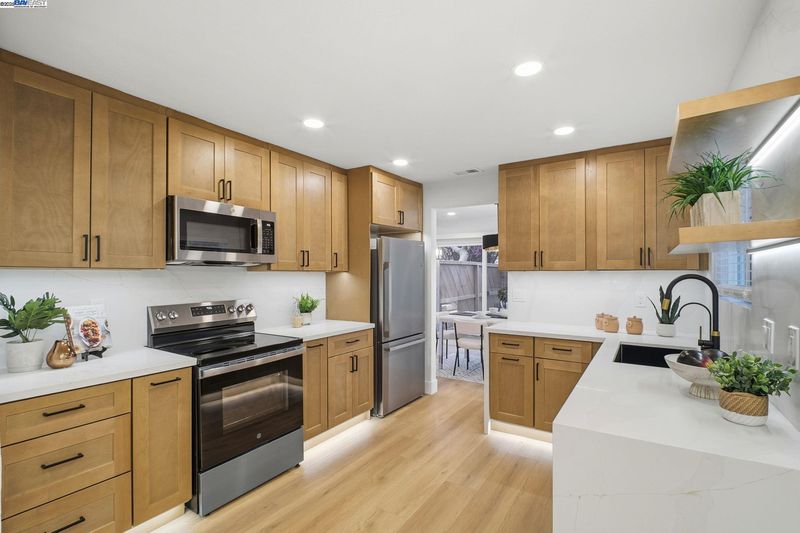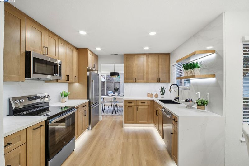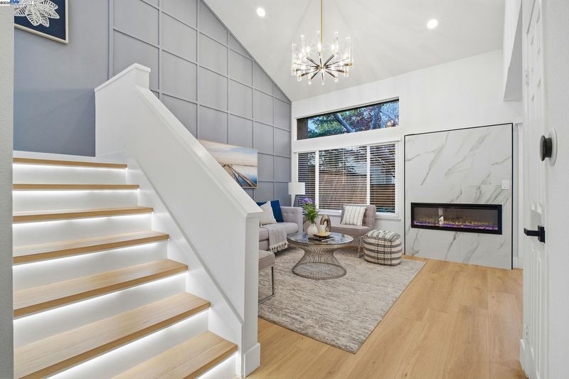1 of 1, Welcome to this one of a kind exquisitely luxurious townhome in the heart of Hayward. This beautifully updated home features 3 generously spacious Bedrooms and 2.5 updated modern bathrooms. Features include vaulted ceilings with recessed lightning throughout the whole home. A very spacious and fully updated kitchen which includes all new appliances, Quartz countertops, floating shelves, full lighting throughout the whole kitchen. The Living room boasts a beautiful crystal chandelier, floor to ceiling accent wall, and tiled Fireplace. Enjoy family gatherings and meals in your beautiful dining room with a wood slat led accent wall. Step on to the second floor with warm led stair lighting. Upstairs include 3 spacious bedrooms with a large vaulted ceiling primary bedroom as well as a fully updated modern bathroom, as well as a second modern full bathroom with a large tub. Brand new washer and dryer included, as well as brand new blinds throughout the home. Your 2 car garage includes a brand new garage door, Vevor tiles, and well lit hexagon lighting. Relax in your cozy backyard which includes large pavers, turf, plants, string lights. Conveniently located close to highways Bart, shopping centers, and restaurants and schools within walking distance,Don't miss out!