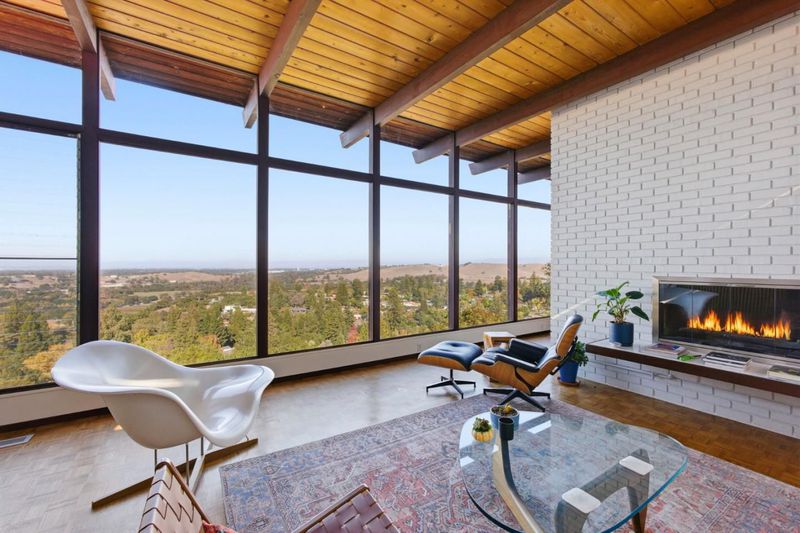 Mid-Century Modern enthusiasts will delight in this one of a kind architectural gem. Designed by architect Alan Blair, this home boasts three levels of blissful views reaching from San Francisco to Santa Clara. A host's dream! Tucked away from the flats, this stunning retreat is quiet and private. The home boasts three large decks, a hot tub, two gas fireplaces, an expansive remodeled lower level and two Tesla chargers in the garage, five bedrooms and three and a half bathrooms, an office upstairs and two living areas. The dining room contains Herman Miller light fixtures and high ceilings meet walls of expansive glass to thrill and entertain guests. Come claim this magical home that some have said has the best views in the Silicon Valley and experience all that this great community of Ladera offers.