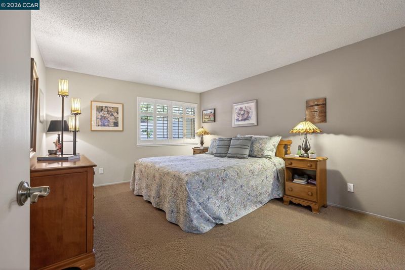 Don’t miss this exceptional ground-floor, level-in unit tucked away in a quiet location. The spacious private patio is ideal for a barbeque, a picnic table, and planting area. Enjoy the convenience of two reserved parking spaces—one covered carport and one uncovered spot both numbered 9121—just steps from your door. The spectacular kitchen and dining area showcase Black Walnut custom cabinetry, granite countertops, laminate flooring, stainless steel appliances, and plenty of lighting, including under-cabinet fixtures. The hall bath features durable vinyl plank flooring, while the main bedroom offers a private bath with a walk-in shower and a dressing area adorned with a stunning custom-built Cherry Wood vanity and cultured marble countertop. Berber carpeting adds comfort to the living room, hall bedroom, and main bedroom. Excellent double-pane windows and elegant plantation shutters are found throughout, ensuring style and energy efficiency. The laundry area includes washer and dryer hookups for added convenience. This development boasts amenities such as a pool, clubhouse, play area, and beautifully maintained landscaping. Located close to shopping, transportation, parks, and schools, this unit offers both convenience and tranquility. Don’t miss out—this home is truly beautiful!