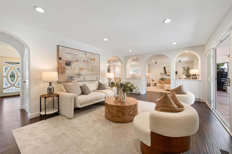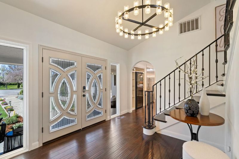 Stunning South Willow Glen custom home, meticulously rebuilt in 2018 with premium materials, designed for indoor-outdoor living. Grand entry with a dramatic staircase opens to an impressive foyer where a statement chandelier sets an elegant tone. Great room with skylight flows into the chefs kitchen with quartz countertops, custom cabinetry, Thermador appliances, and walk-in pantry. An oversized island with wine fridge overlooks the dining area and family room, perfect for everyday living and entertaining. A separate living room adds flexibility and elegance. Designed with versatility, the home features a rare dual primary layout with 2 spa-inspired suites, each appointed with rain showers, dual vanities, Hansgrohe fixtures. The large main-level suite offers a soaking tub and walk-in closet. The upstairs retreat offers his-and-hers closets & serene treetop views. Owned solar, EV ready, fiber internet, dual climate control, separate water heaters, water softener, updated electrical, plumbing, & HVAC, 50-yr roof, epoxy garage. The private backyard is thoughtfully designed with custom fire pit island, outdoor kitchen, water fountain, TV, Bose sound system, fruit trees. Minutes to DT Willow Glen, parks, Schallenberger Elementary, Hacienda Magnet School, & Oakridge Mall with 99 Ranch.