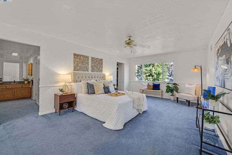 Perched on a large, unique, corner lot this 4 bedroom, 2.5 bath home has all the classic charm. The downstairs bedroom offers private space perfect for an office while the primary bedroom lounge will easily become one of your favorite areas to ease into your mornings or to unwind from the day. A separate living and family room provides functionality for everyday life and versatility for entertaining. The huge lot offers endless potential. Even with a large swimming pool there is still room for gardening, RV Parking, and even a potential ADU site. All of this located near Bishop Ranch's shopping and restaurants, Central Park and the Regional Preserve. Experience the ideal blend of urban convenience and the beauty of nature, all within a community that feels like home.