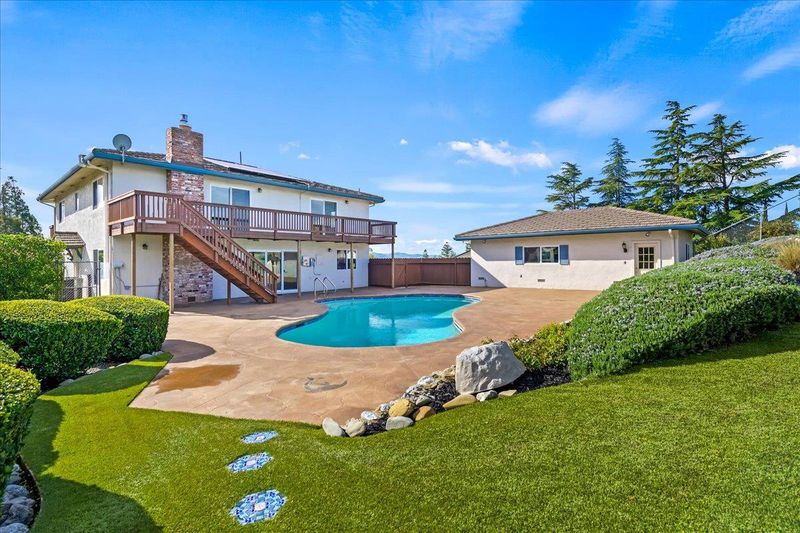 Welcome to this beautiful custom home where country living and city convenience come together. Situated on an over ¼-acre lot, offering a country feel while staying close to all the Livermore amenities you love. Located just minutes from downtown Livermore, this property backs to open space and showcases expansive views of the Livermore hills. Upon entry, you’re welcomed by a charming library with built-in bookshelves on one side and a spacious living room on the other. A formal dining room with built-ins is ideal for entertaining. The kitchen features stone counters, an electric range, and a dishwasher. The kitchen opens to a large family room with a gas fireplace, built-in cabinetry and bookshelves with a sliding door leading to the backyard. Upstairs offers four generously sized bedrooms, including the primary suite with two closets and a patio. The backyard is a true retreat with a swimming pool and stunning hill views. An oversized garage with built-in cabinets provides ample storage. A rare opportunity to enjoy space, views, and convenience all in one special Livermore home.