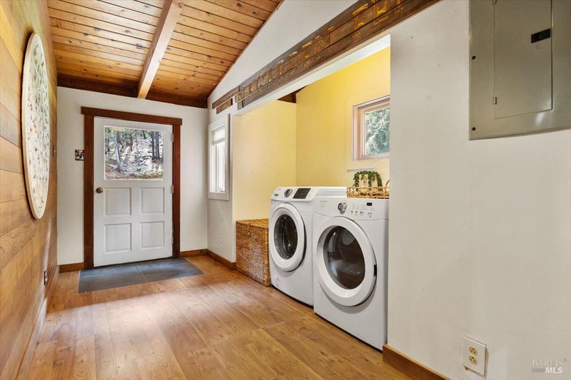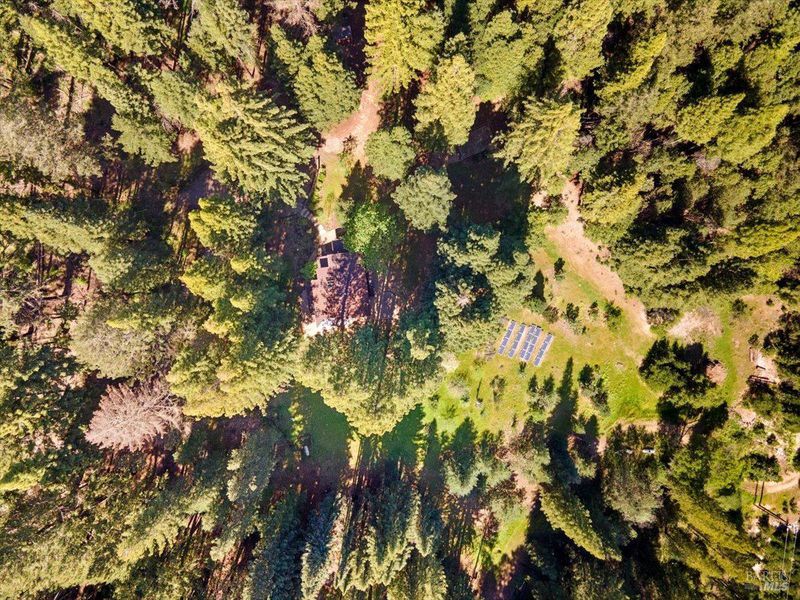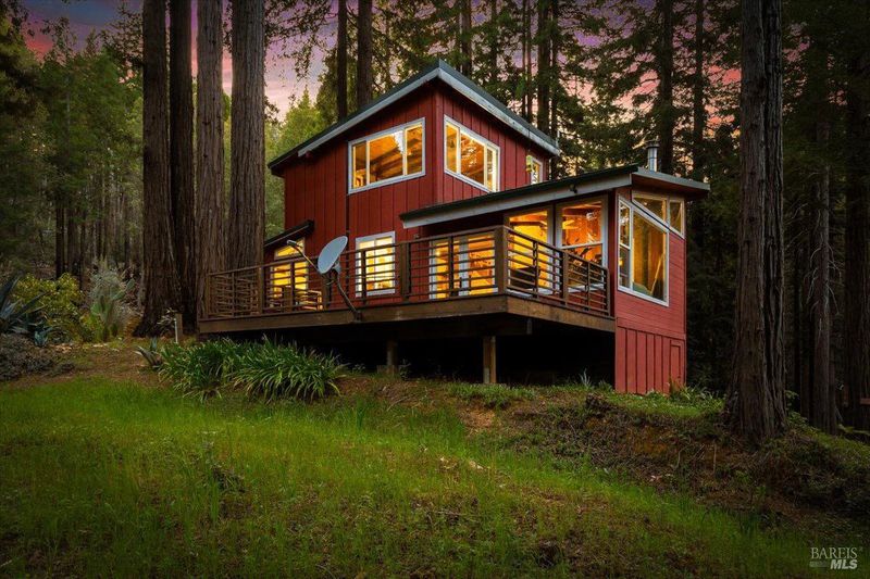 Situated amidst the redwoods in Healdsburg's scenic Mill Creek, this nearly 43-acre property blends peace, privacy, and timeless design. Accessed by a private road, the main home is a 4BD/3BA Craftsman built from first-growth redwood from the property, with one bed and bath conveniently located on the main level. A spacious paver patio wraps the home, offering the perfect spot to soak in the views. Inside, the great room features a wood-burning stove, hardwood floors, and expansive picture windows that invite the outside in. The remodeled kitchen boasts a Wedgewood range, built-in Viking fridge, custom cabinetry, and a walk-in pantry. A large mudroom/laundry area sits just off the kitchen for added functionality. All 3 baths remodeled as well. Brand new heating sytem! Down the road, a separate guest cabin offers a full kitchen, wood floors, indoor laundry, wood stove, two bedrooms & full bath, and a wraparound deck that basks in sunlight. An additional secluded redwood deck creates a peaceful escape ideal for art, yoga, or summer fun. Both homes and the well system are powered by owned solar and a Generac generator. Just 15 minutes to downtown Healdsburg's restaurants, tasting rooms, and Hwy 101 this retreat offers complete privacy without sacrificing convenience. **Seller fianancing possible**.