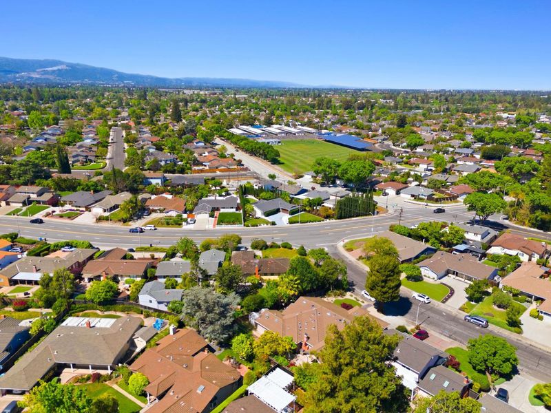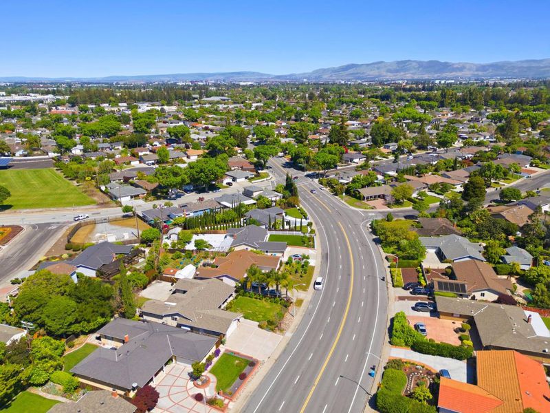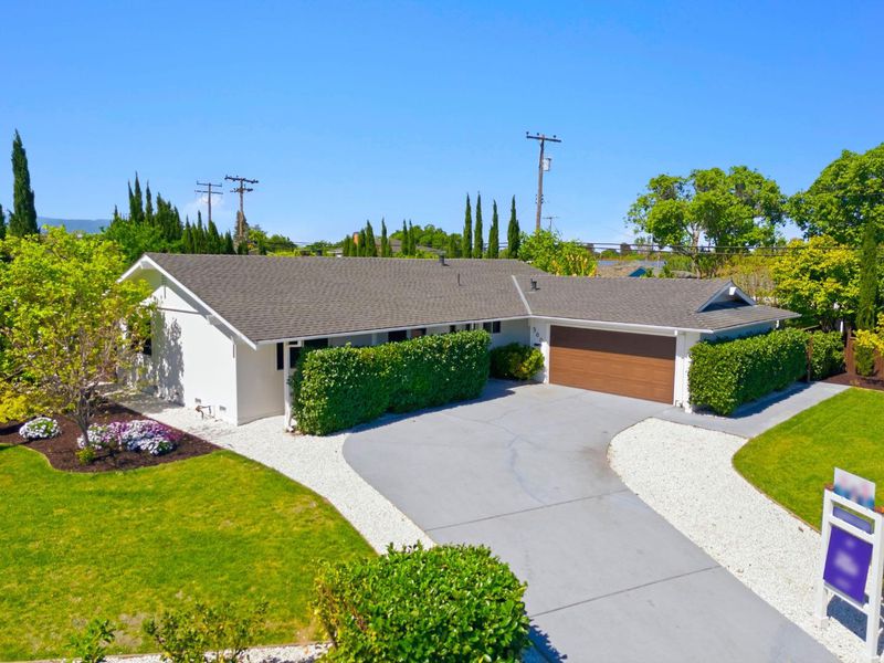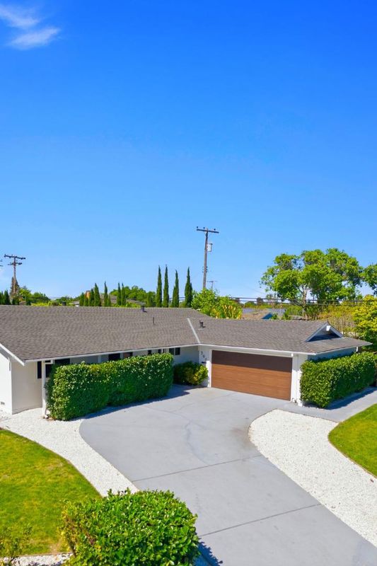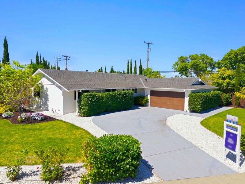 On a rare 1/4 acre+ and 200ft+ deep lot in one of Santa Claras premier neighborhoods, Forest Park, this thoroughly-remodeled, east-facing four bed/two bath single level home is bathed in natural light, thanks to an opulent vaulted living area and oversized windows. Beyond the staggeringly rare footprint, with sprawling and professionally-landscaped front, side, and rear yards, featuring mature fruit trees, a custom fountain, ample patio space, and room for expansion or ADU construction, a crescent driveway with room to turn around, and an impressive privacy border of low-maintenance evergreen trees, the extensive list of features and upgrades include updated central heat/air and hot water heater, two GC-remodeled bathrooms with full porcelain slab shower enclosures and designer-selected fixtures, a spacious kitchen with updated appliances (including a high-end Miele cooktop), a master suite with an attached *fully permitted* bonus room (not included in square footage), ideal for use as a comfortable home office, den, or family/play room, solid hardwood floors, in-ceiling LED lighting, and a finished garage with epoxy flooring. Convenient Santa Clara location near Millikin Elementary and major tech campuses including Apple, Nvidia, ServiceNow, Intel, AMD, and Palo Alto Networks.